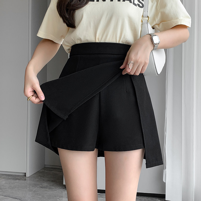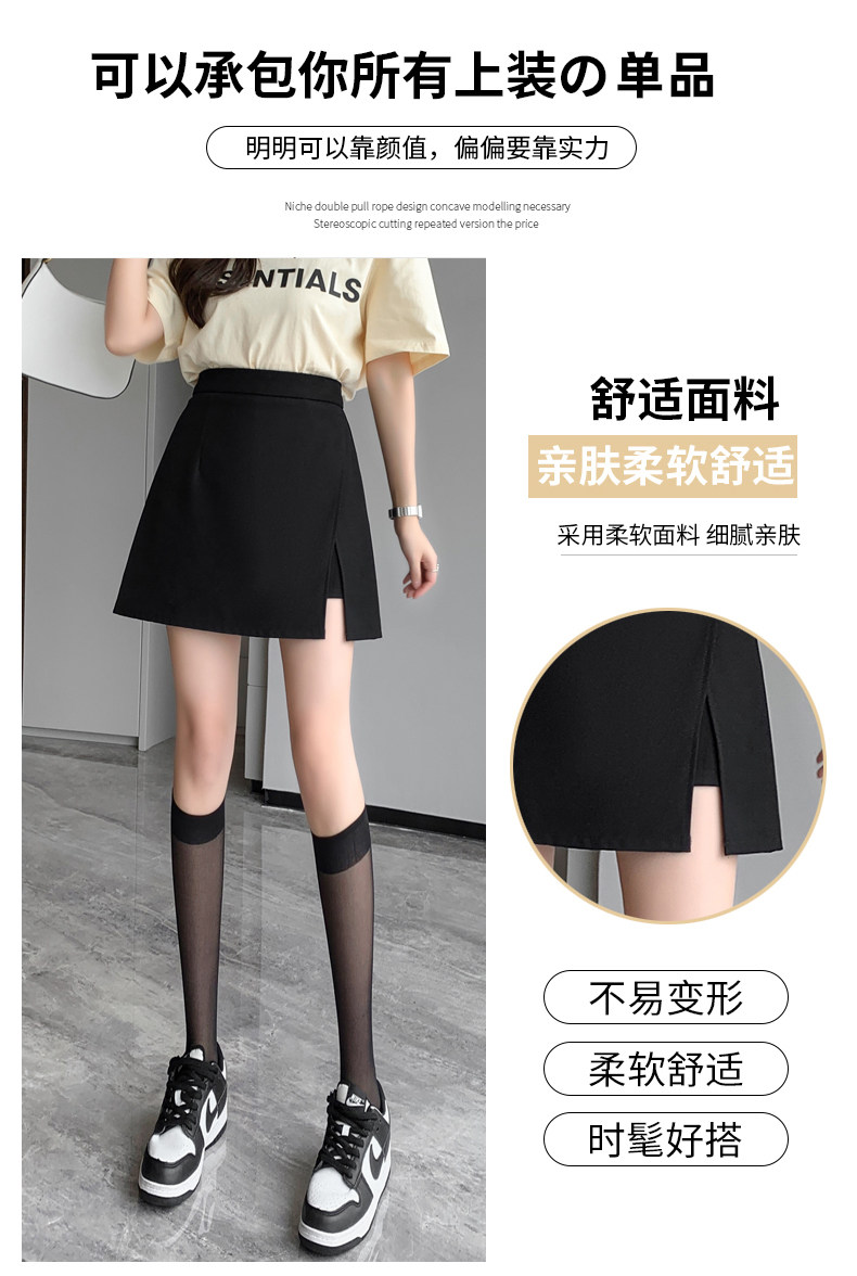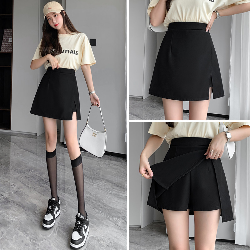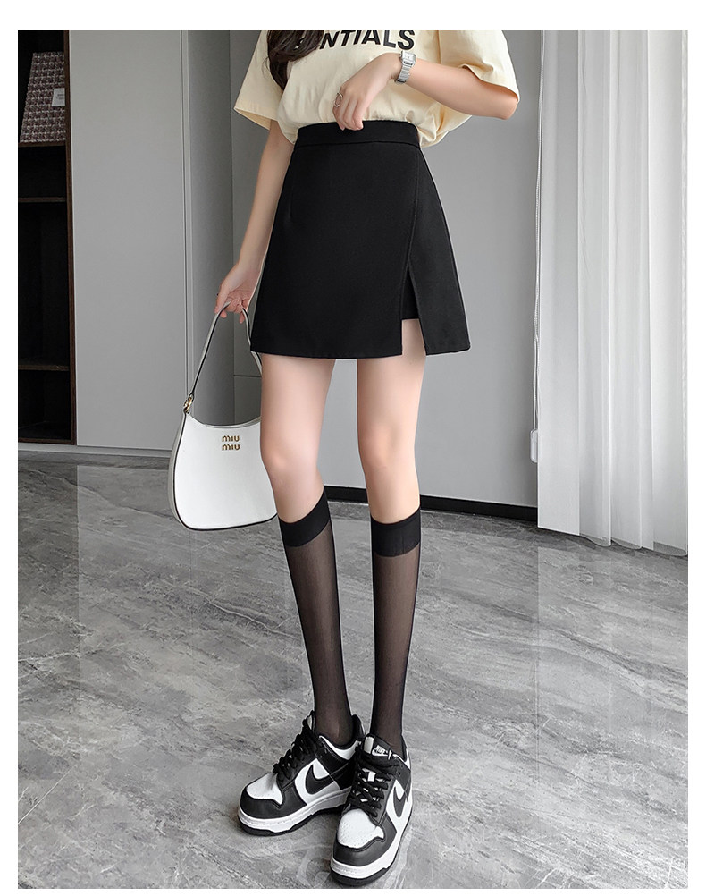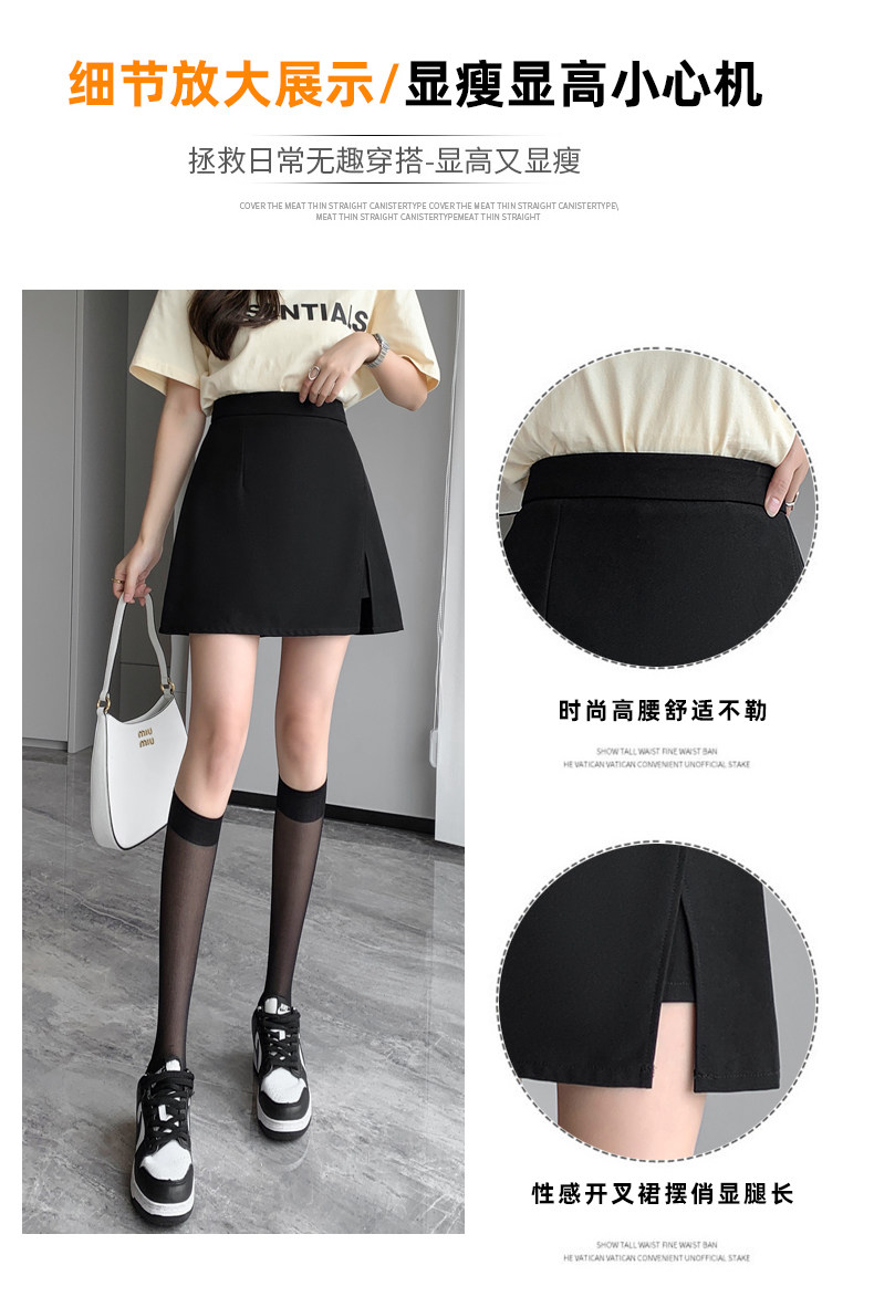 Черный костюм, летняя тонкая юбка, коллекция 2023, высокая талия, А-силуэт