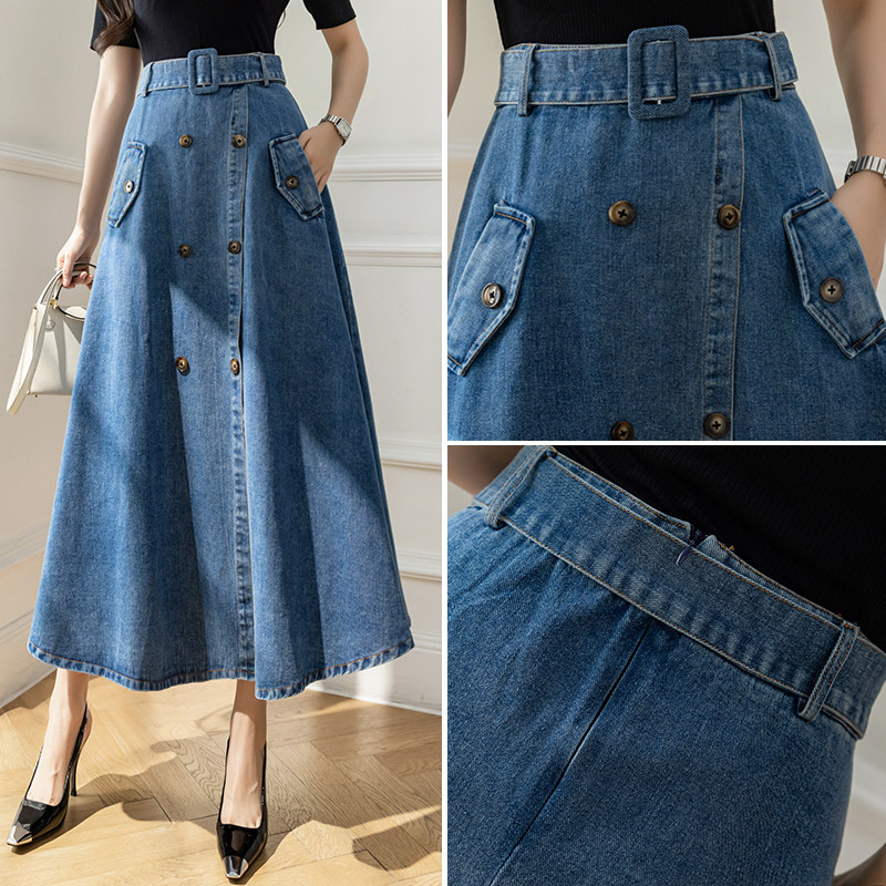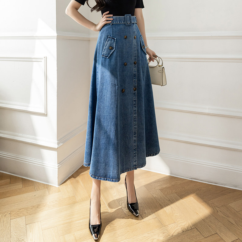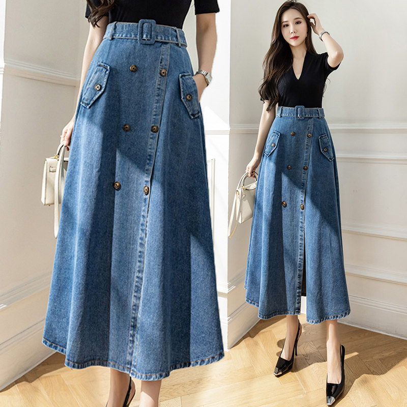 Дизайнерская джинсовая юбка, сумка, длинная длинная юбка, высокая талия, тренд сезона, с акцентом на бедрах, длина миди