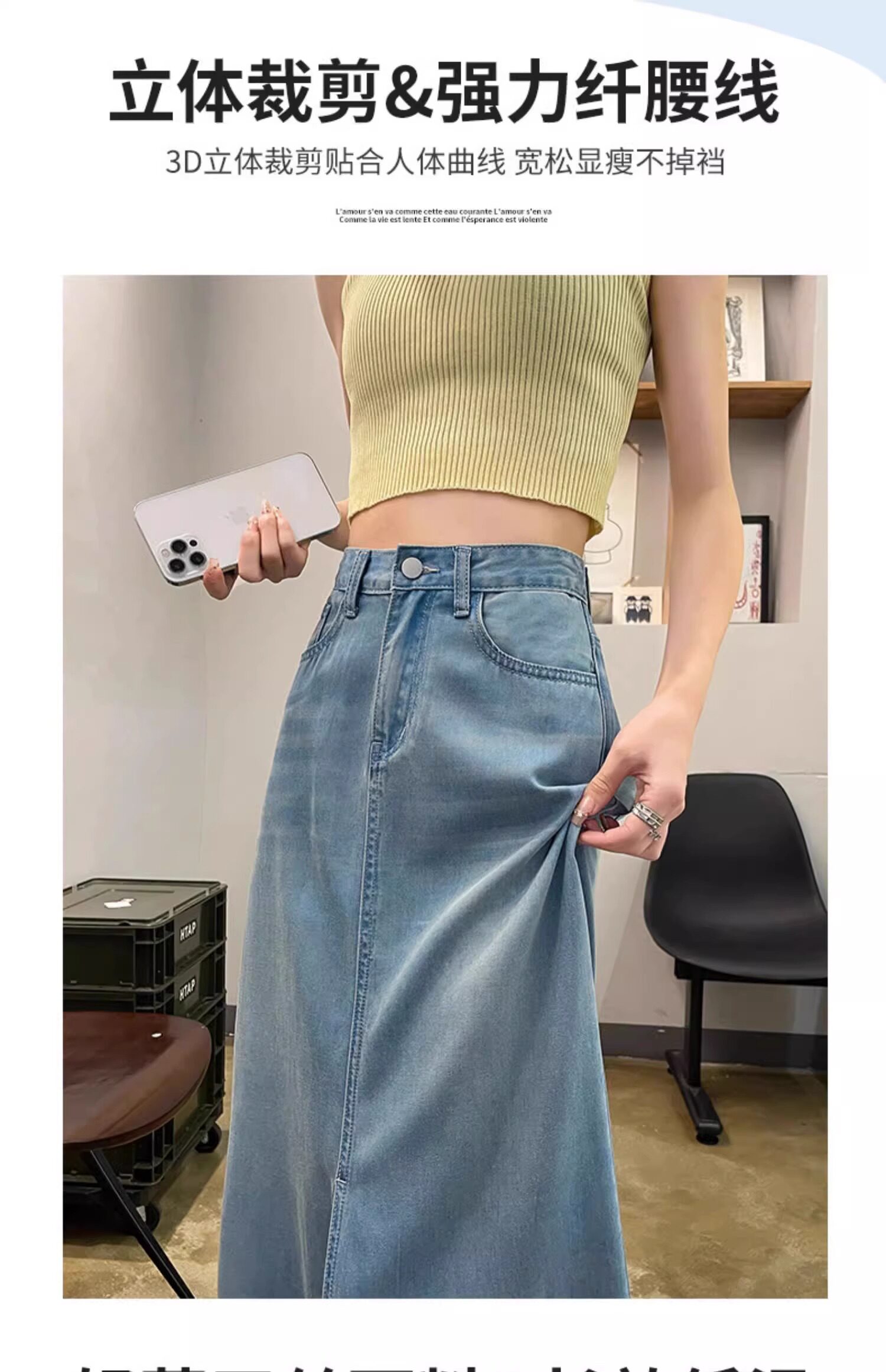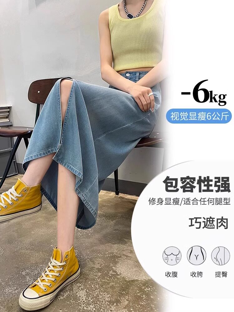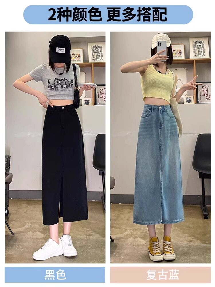 Летняя тонкая джинсовая юбка, дизайнерская длинная юбка, подходит для подростков, тренд сезона, средней длины, А-силуэт, высокая талия
