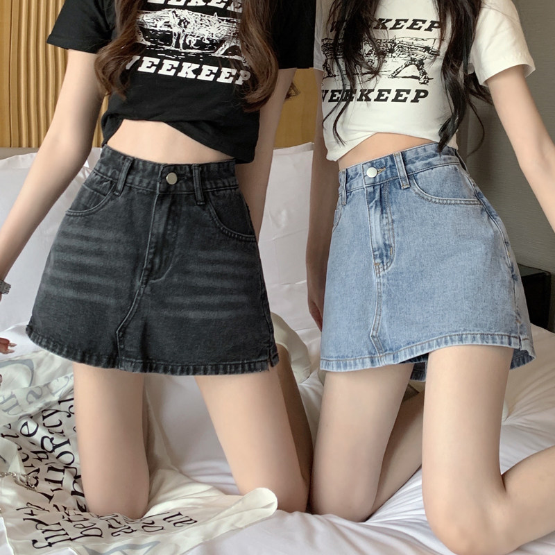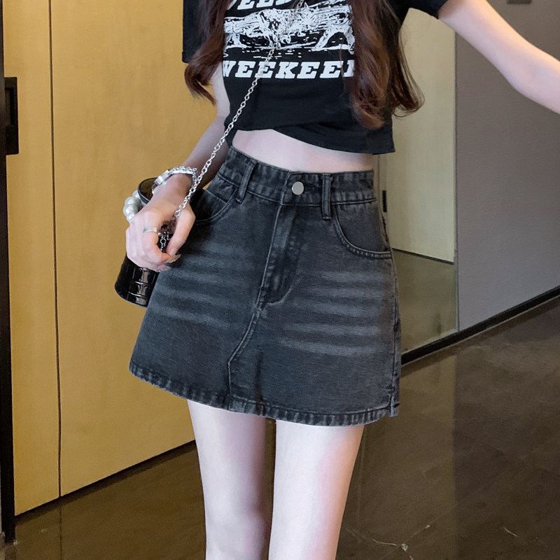 Ретро джинсовая юбка, приталенные штаны, летняя мини-юбка, большой размер, с акцентом на бедрах
