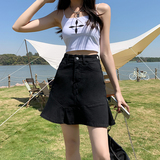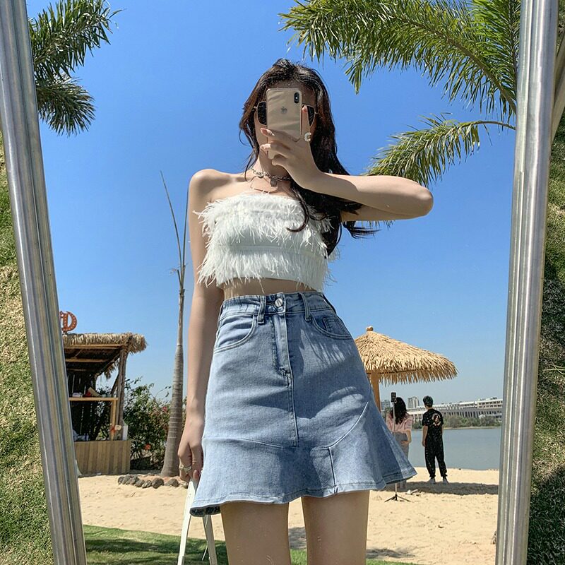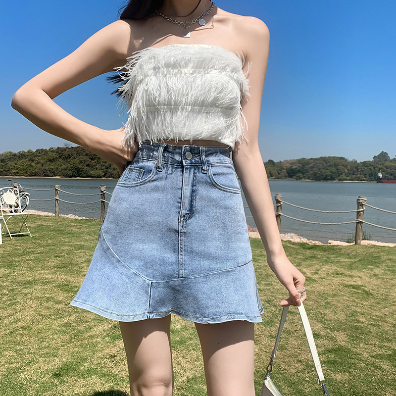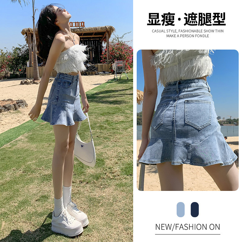 Джинсовая юбка, мини-юбка, А-силуэт, коллекция 2023, рыбий хвост, для формы тела «груша»