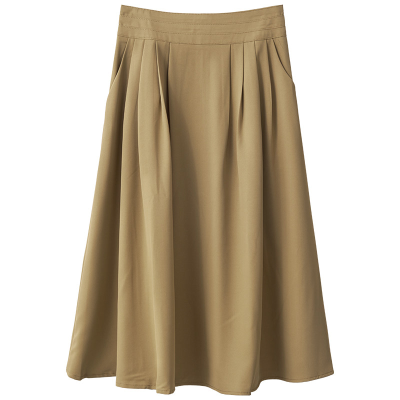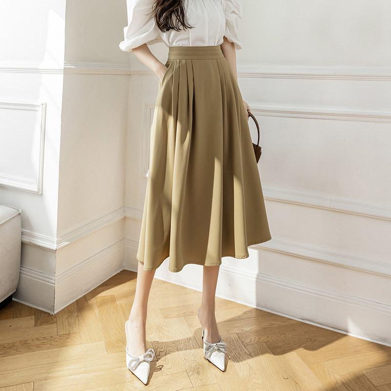 Хаки весенняя длинная юбка, коллекция 2023, высокая талия, длина макси, французский стиль, А-силуэт