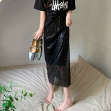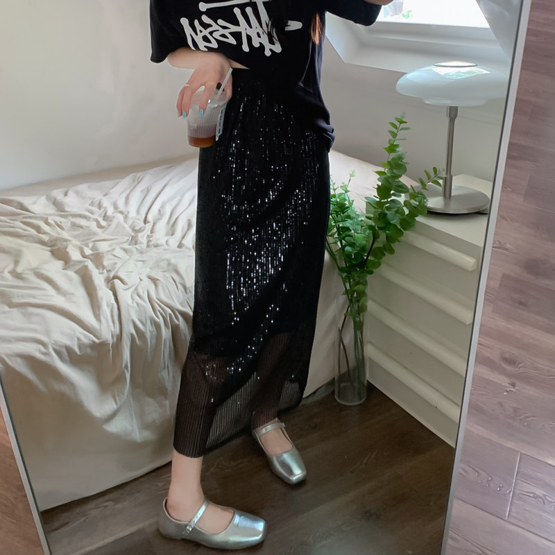 Летние блестки для ногтей, черная цветная длинная юбка, А-силуэт, с акцентом на бедрах, свободный прямой крой, высокая талия