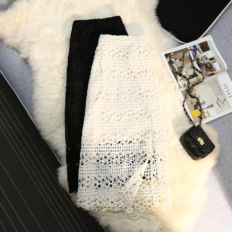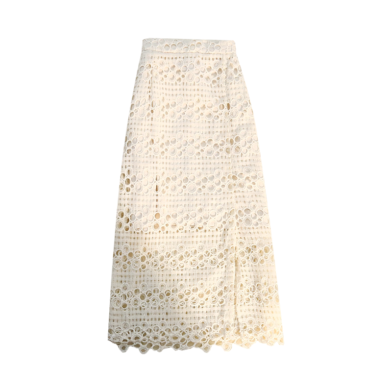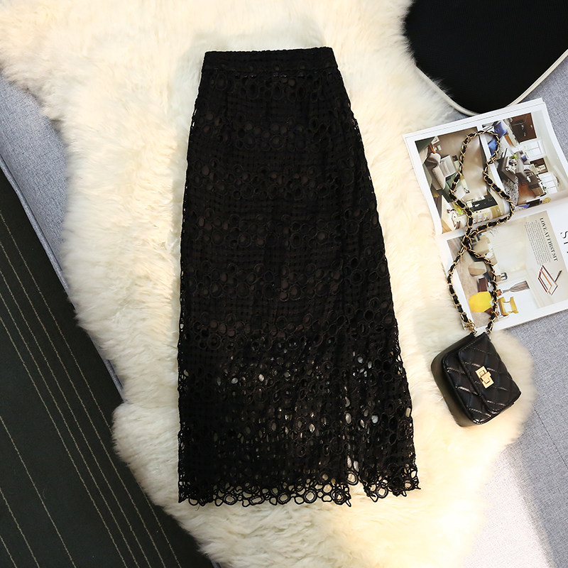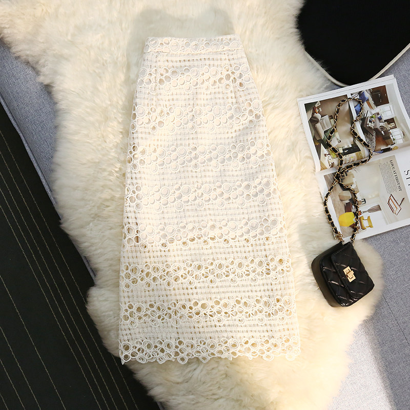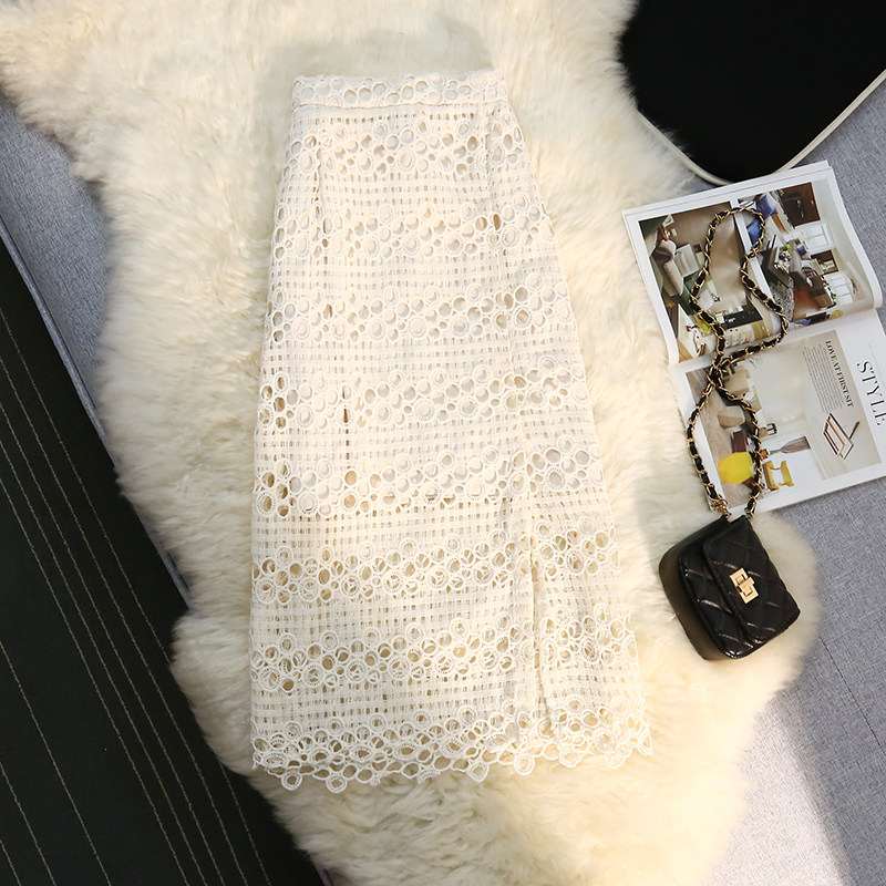 Кружевная юбка, приталенная длинная дизайнерская летняя одежда, высокая талия, средней длины, свободный прямой крой, тренд сезона, с акцентом на бедрах