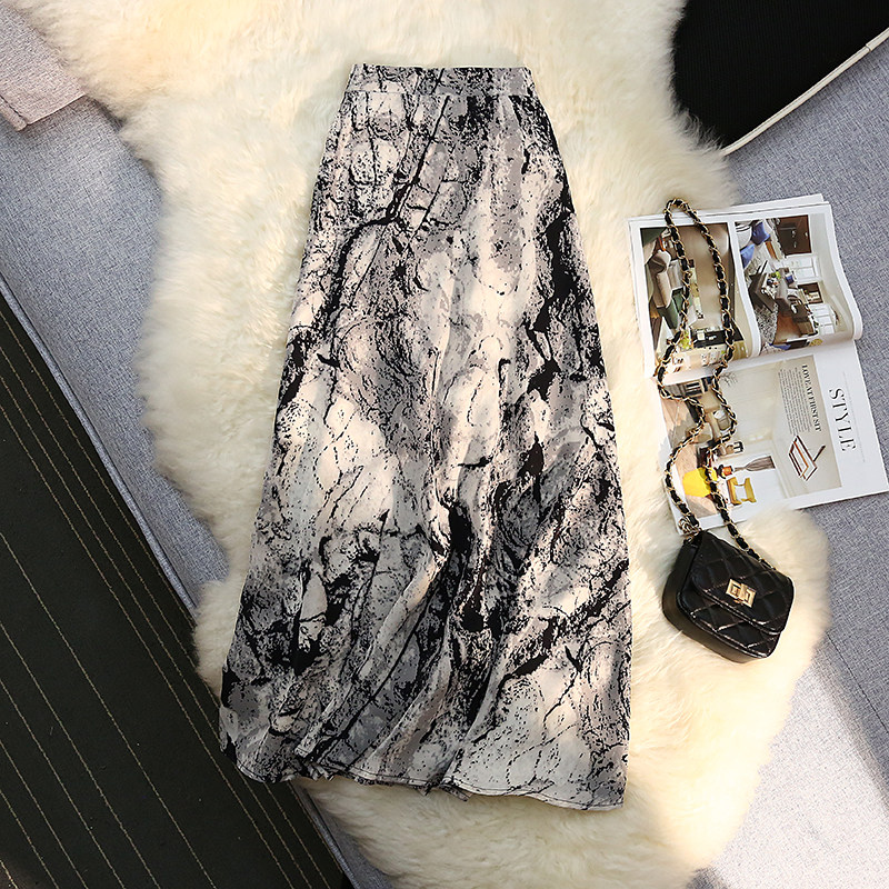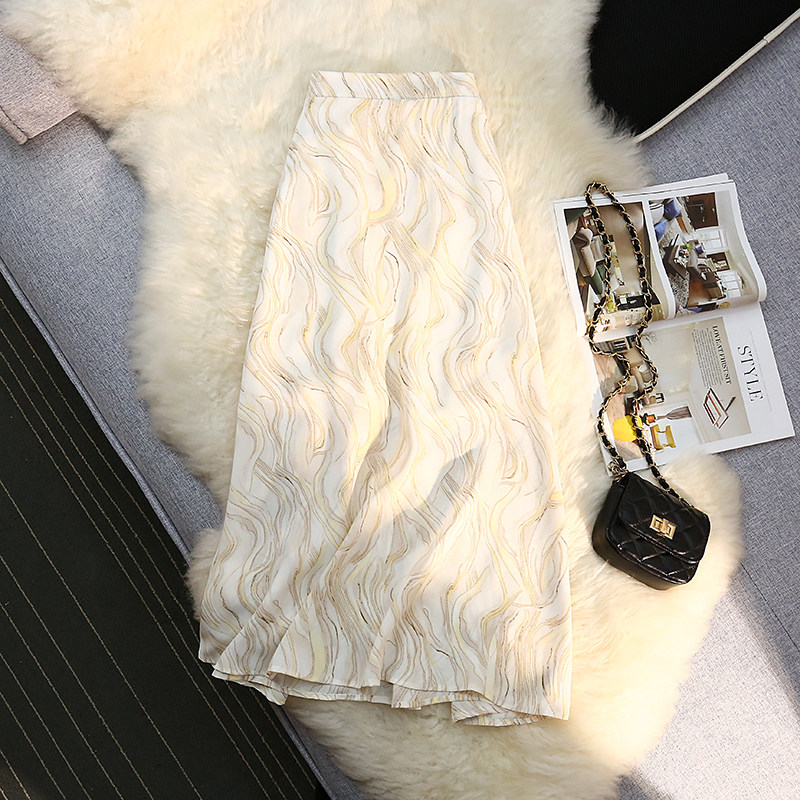 Летняя длинная приталенная юбка, средней длины, высокая талия, А-силуэт