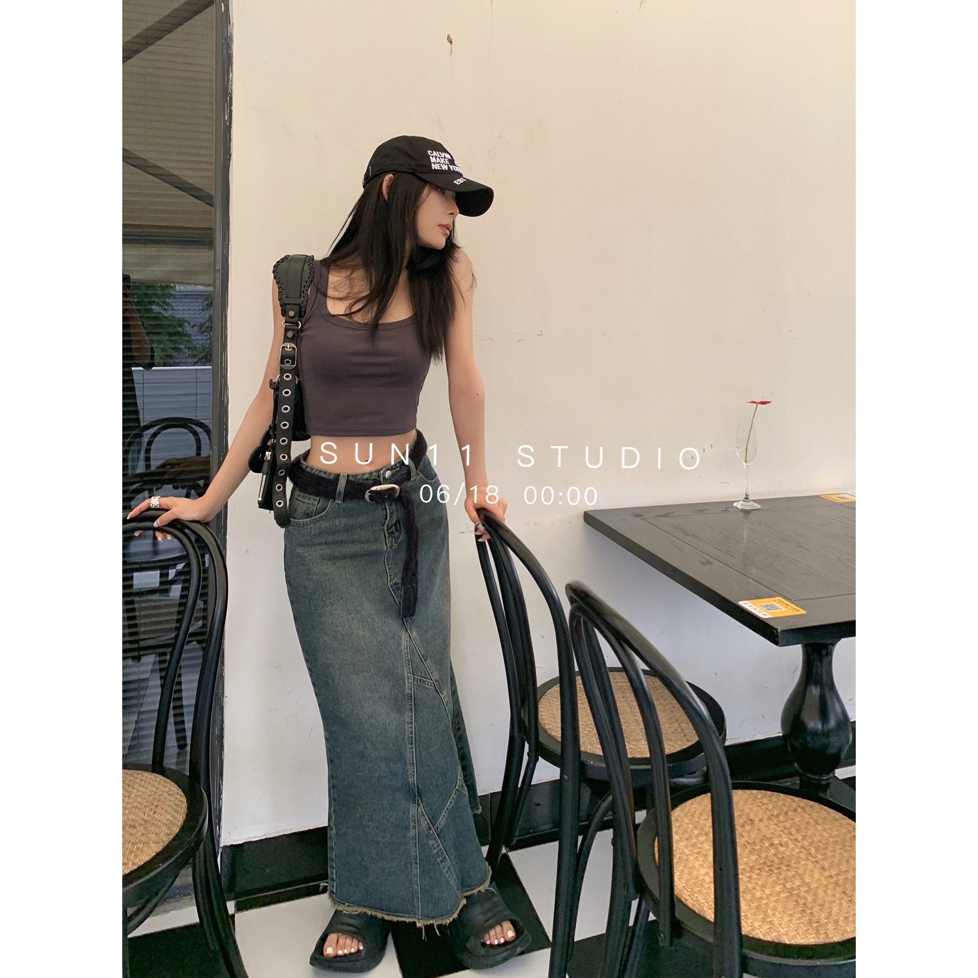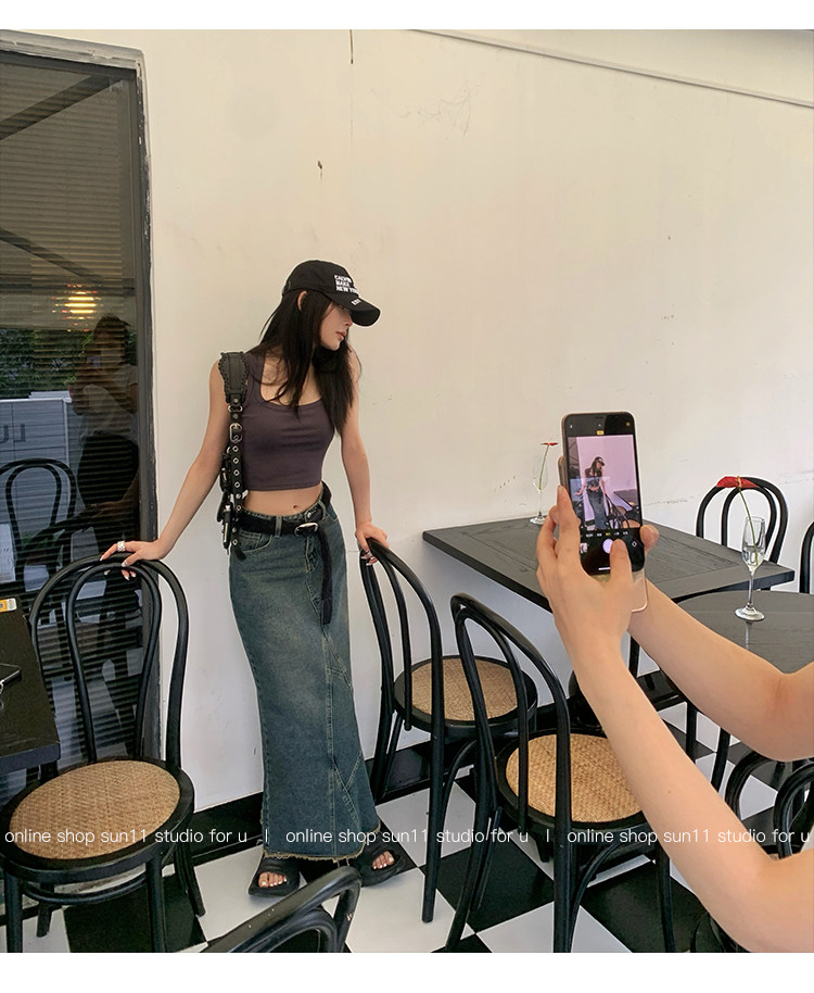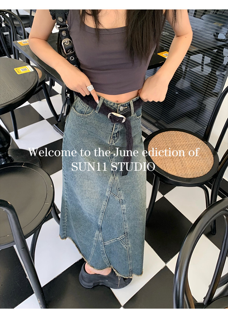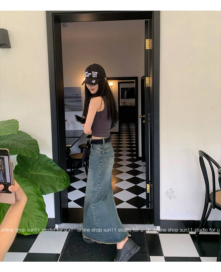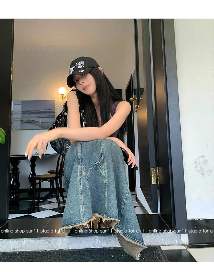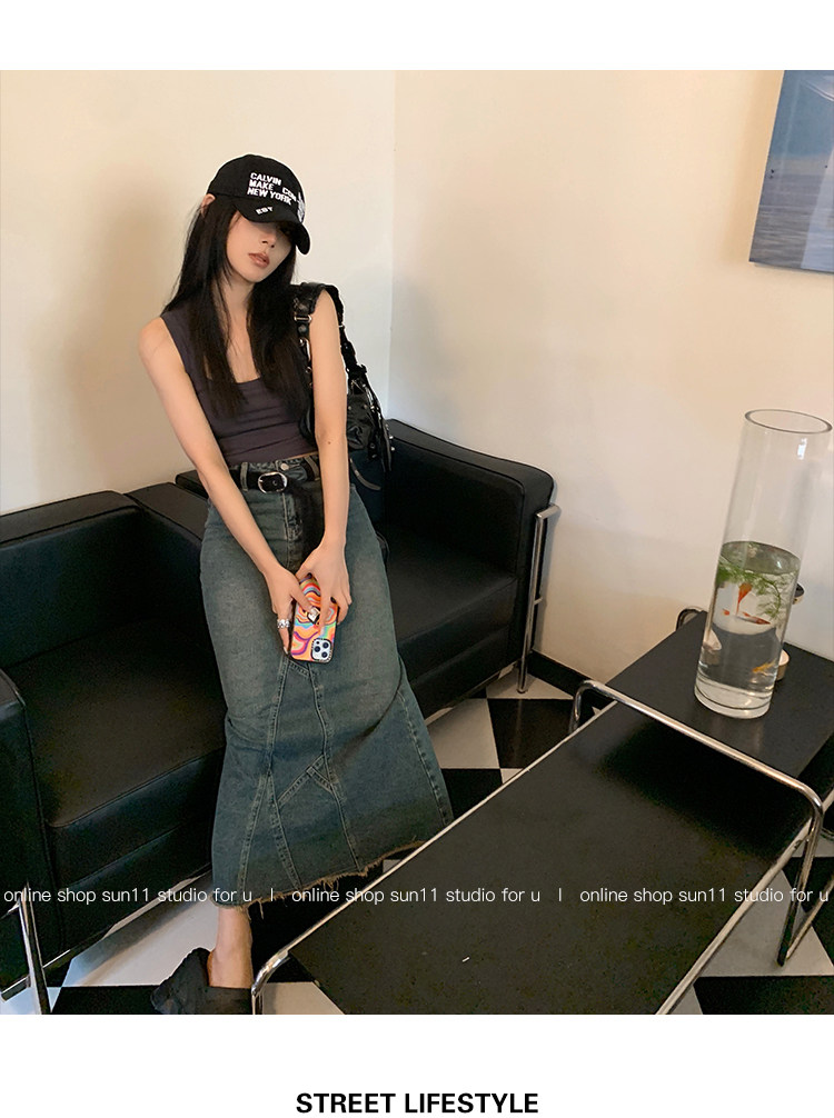 Ретро джинсовая джинсовая юбка, приталенная длинная юбка, (в наличии на складе), высокая талия, А-силуэт, крой «рыбий хвост»