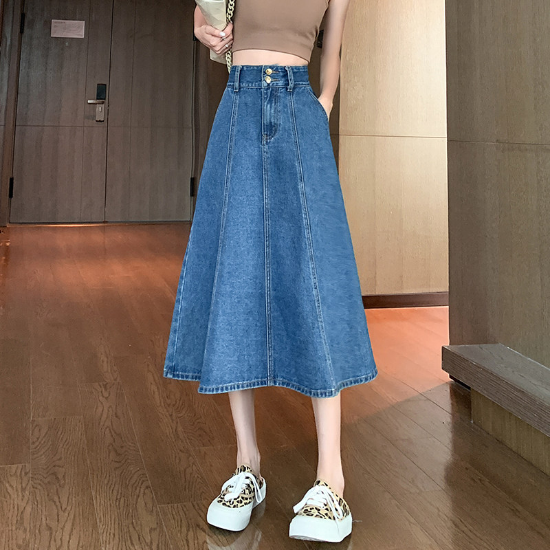 Приталенная юбка в складку, брендовая джинсовая юбка, коллекция 2023, высокая талия, А-силуэт, большой размер
