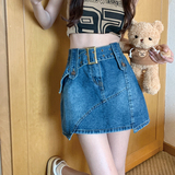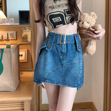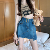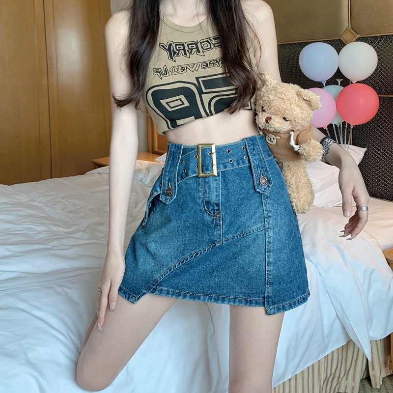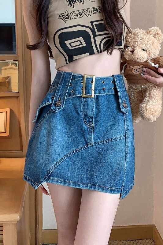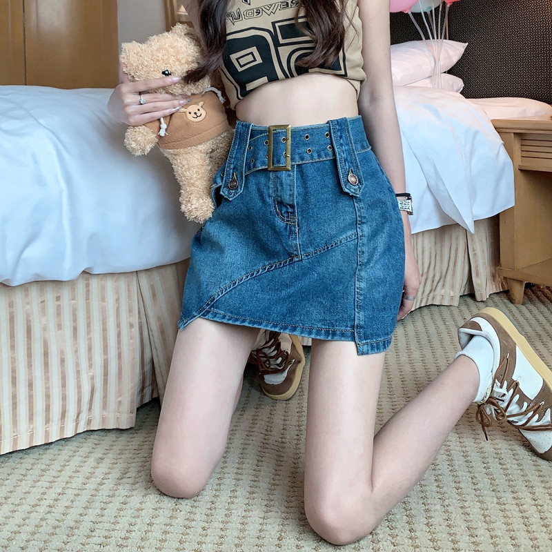 Ретро летняя джинсовая юбка, приталенная мини-юбка, большой размер, подходит для полных девушек, с акцентом на бедрах, А-силуэт