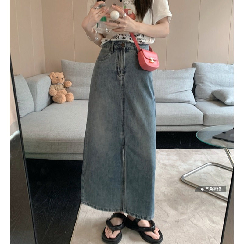 Длинная ретро летняя брендовая джинсовая юбка, высокая талия, свободный прямой крой, в корейском стиле, подходит для подростков