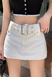 Tide, белая джинсовая юбка, дизайнерские штаны, мини-юбка, высокая талия, тренд сезона, А-силуэт