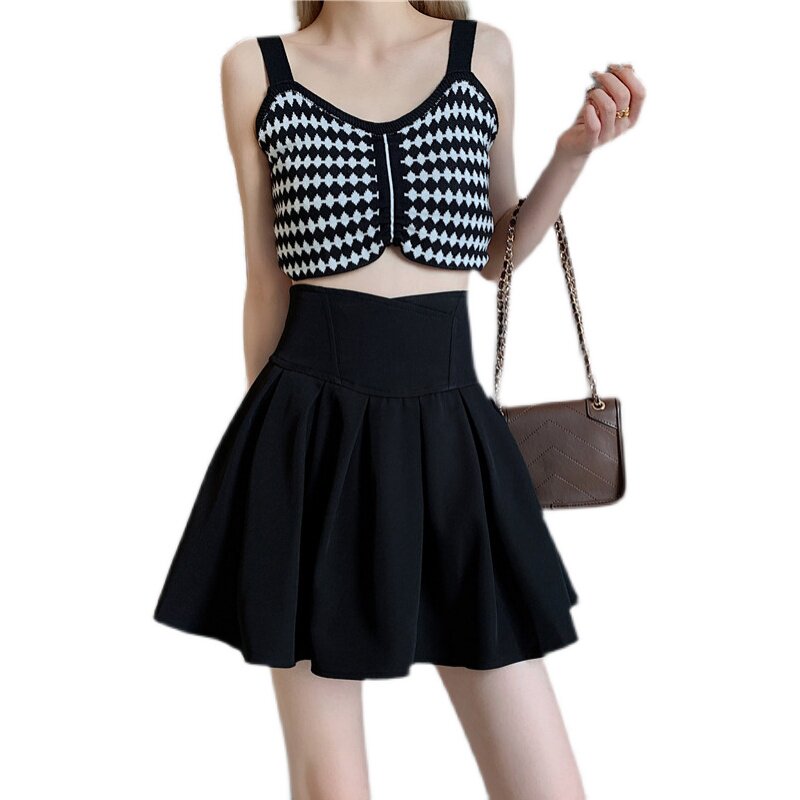 Приталенная черная летняя тонкая мини-юбка, юбка в складку, коллекция 2023, подходит для подростков