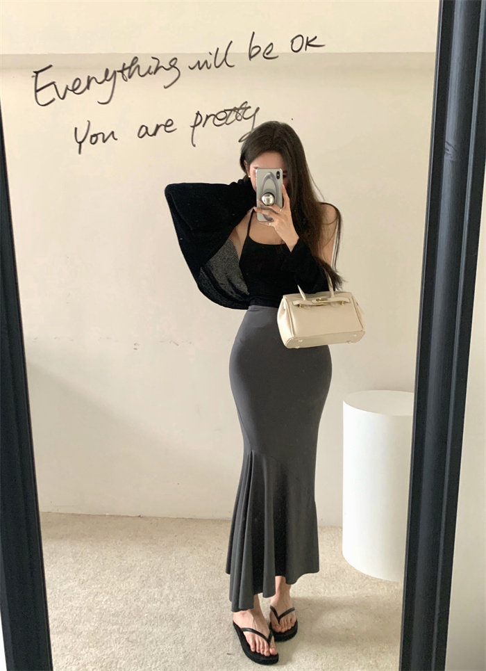 | Цвет: | Черный кардиган, Белый кардиган, Черный, эффект подтяжки, Абрикосовый, эффект подтяжки, Серая юбка, Синяя юбка |