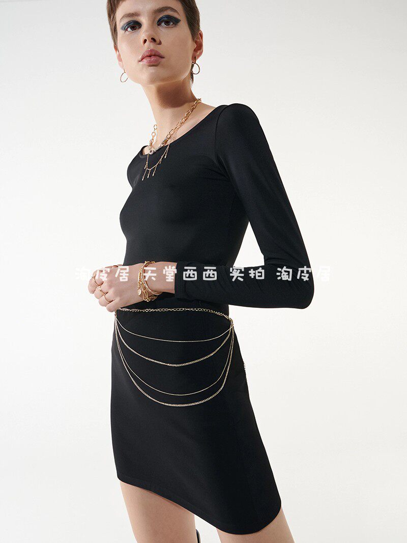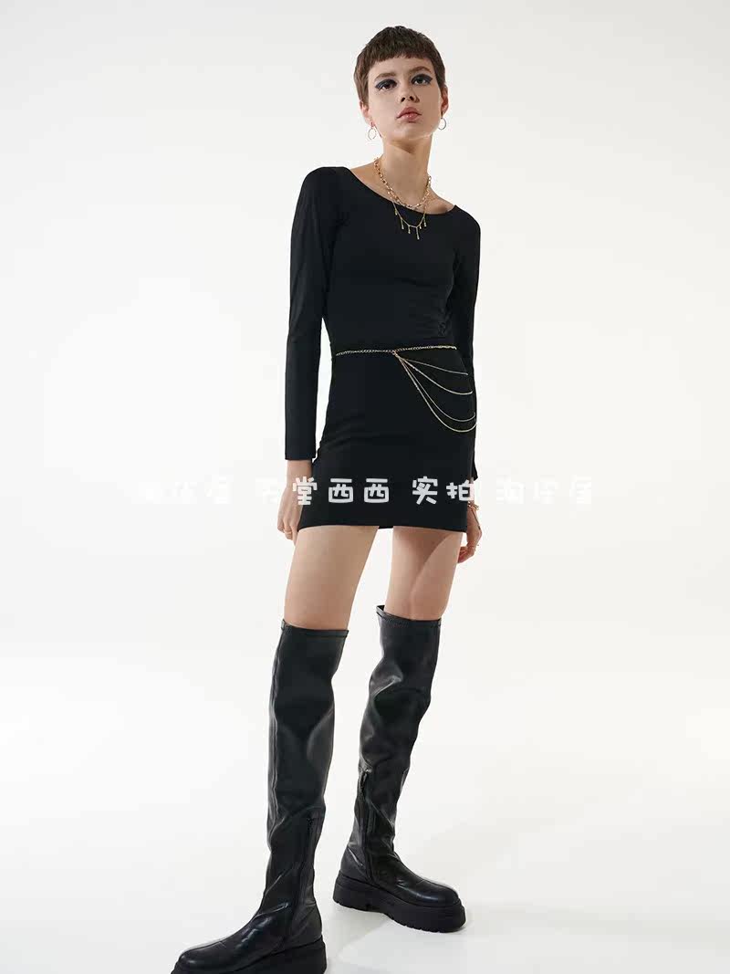 Черная юбка, высокая талия, с акцентом на бедрах