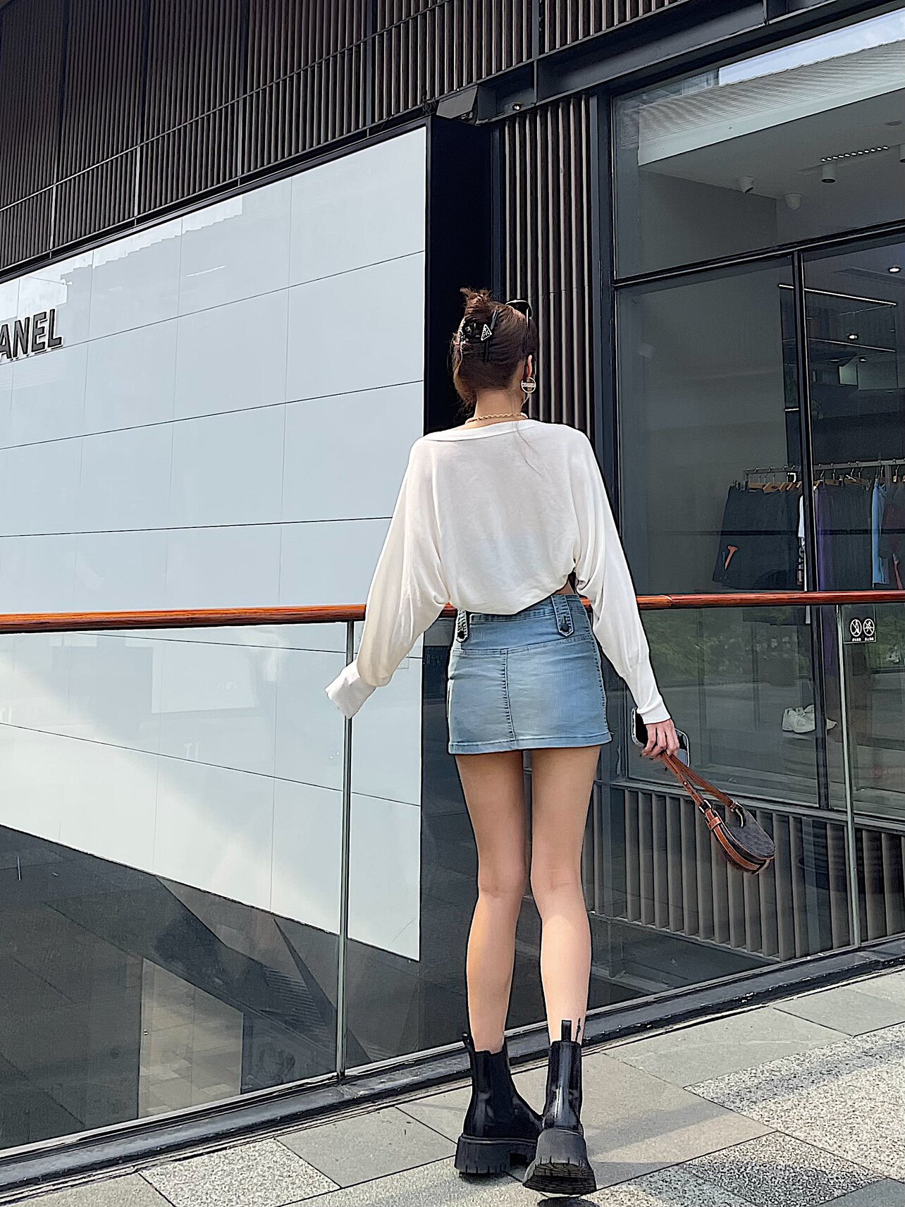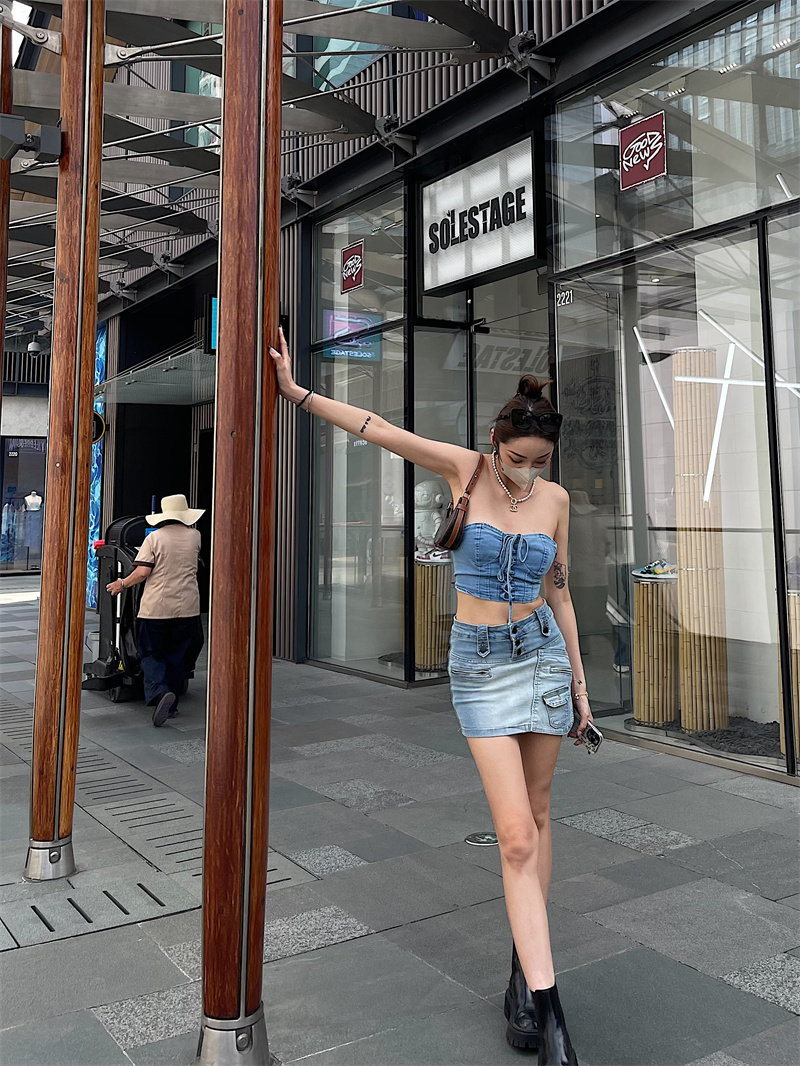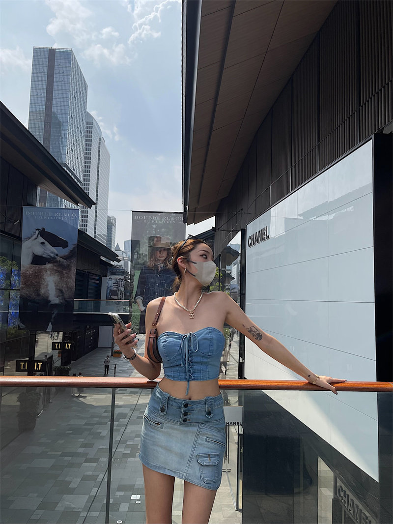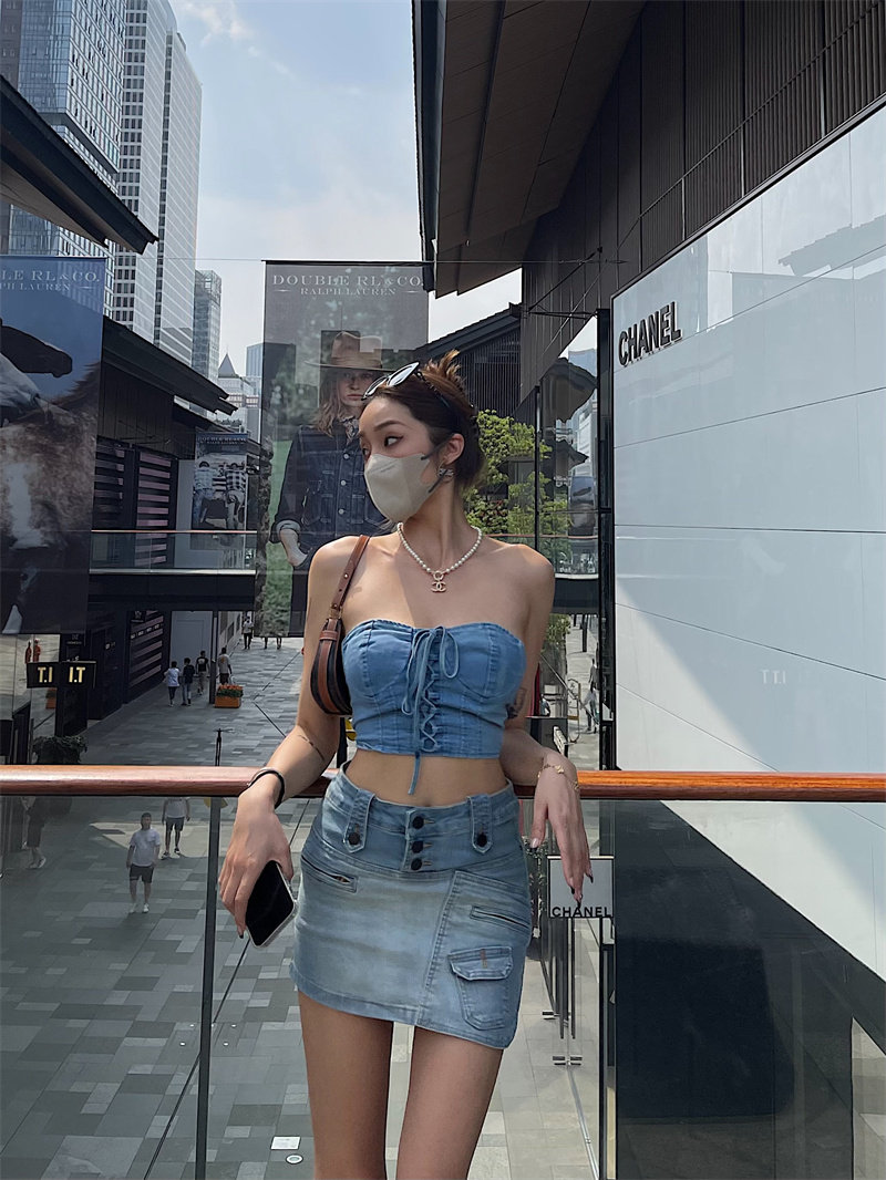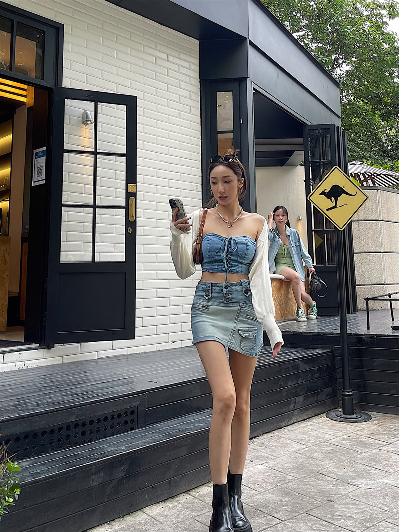 Bacchus Online High -Waiast Single -Creasted Design Design Sense нерегулярные джинсовые юбки, чтобы предотвратить свет
