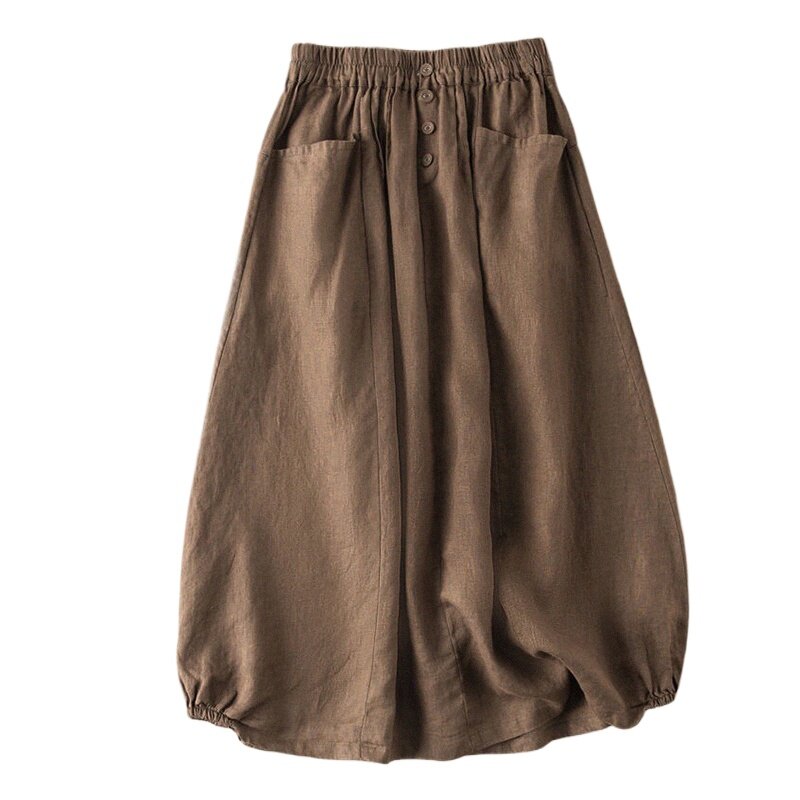 Брендовая приталенная длинная юбка, из хлопка и льна, высокая талия, А-силуэт