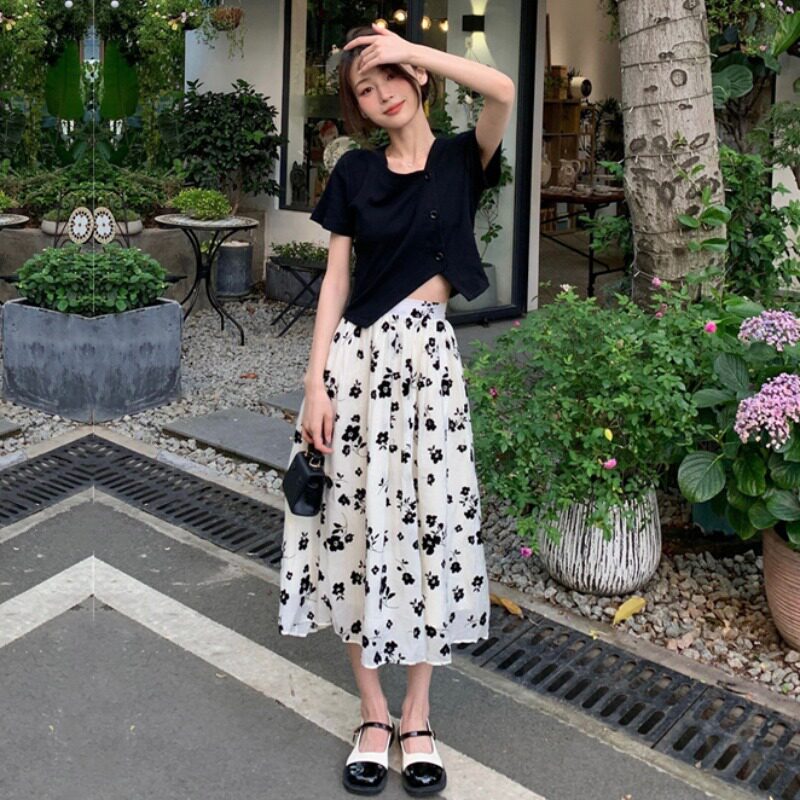 Длинная приталенная дизайнерская юбка, цветочный принт, средней длины, высокая талия, тренд сезона, А-силуэт