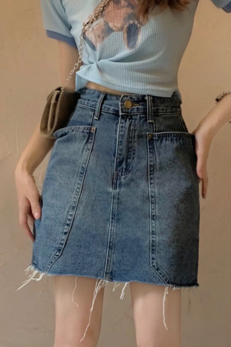 Ретро дизайнерская летняя джинсовая юбка, защитное белье, тренд сезона, А-силуэт