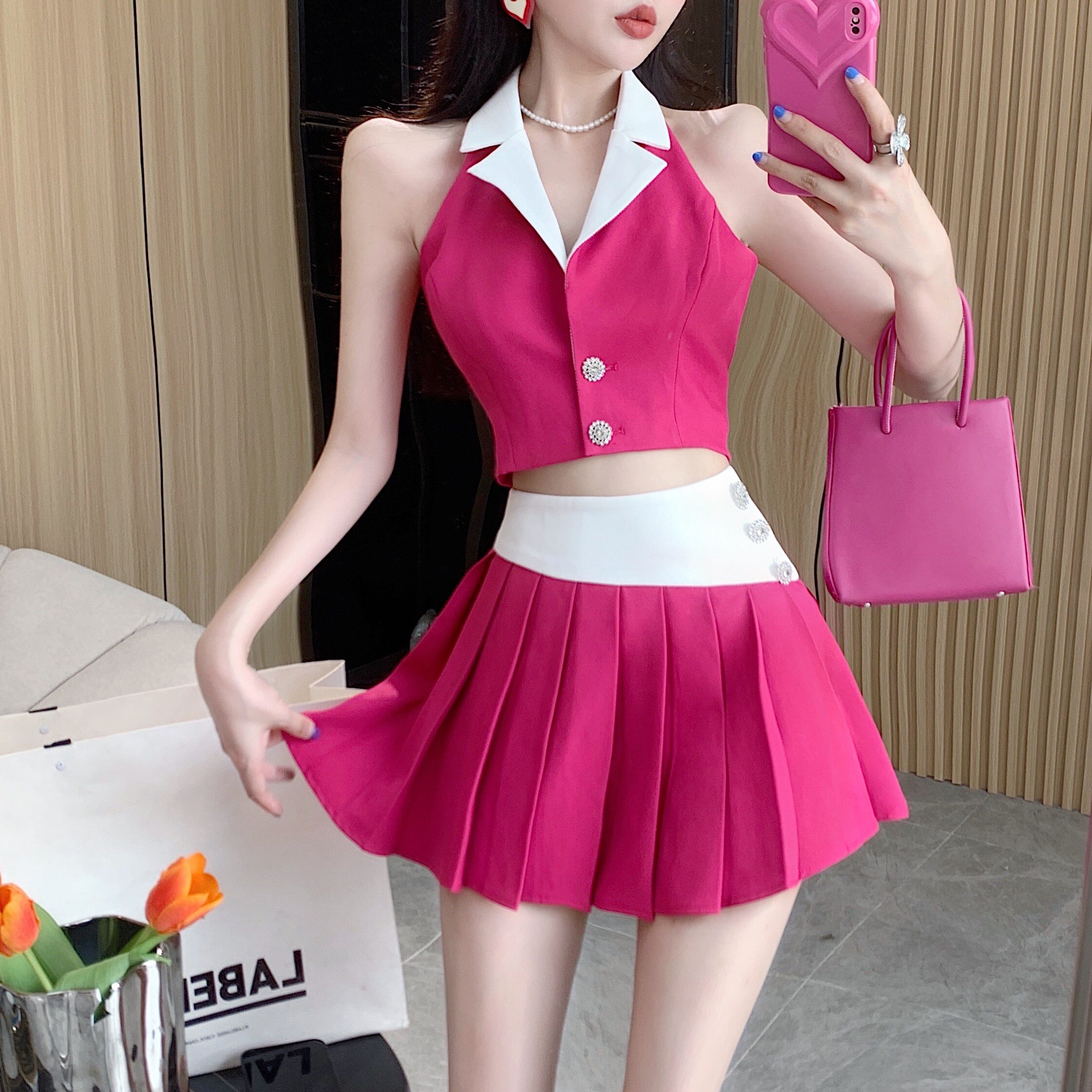 | Цвет: | Розовый топ, Черный топ, Розовая мини-юбка, Черная мини-юбка |