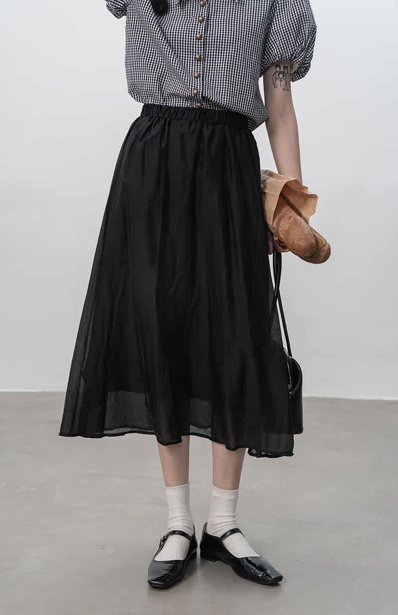 Длинная черная летняя длинная юбка, высокая талия, А-силуэт, длина миди, подходит для подростков
