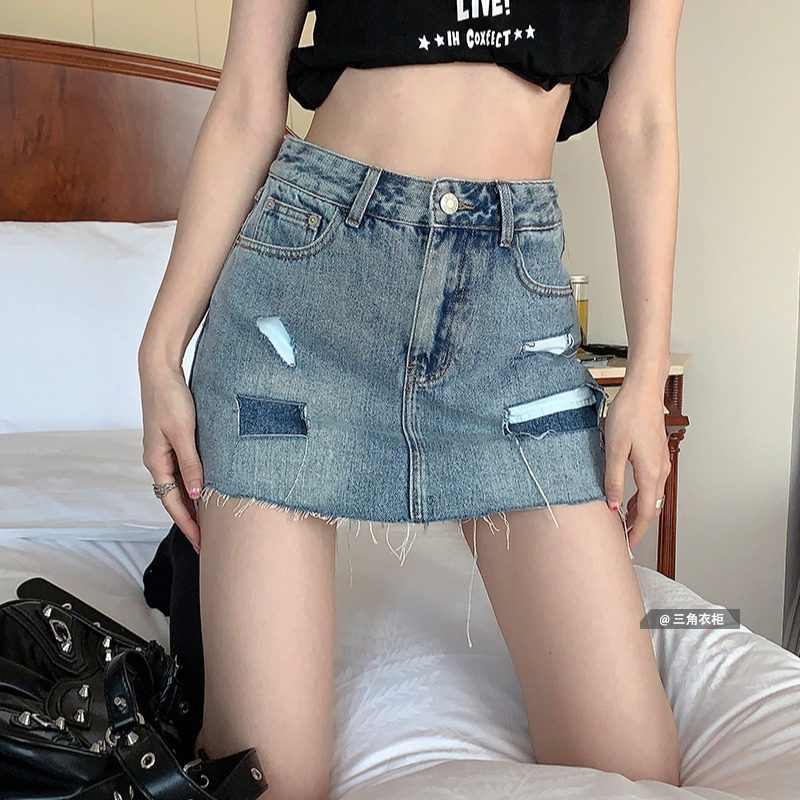 Летняя джинсовая юбка, приталенные штаны, с акцентом на бедрах, высокая талия