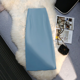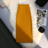 Цветная приталенная длинная юбка, высокая талия, свободный прямой крой, с акцентом на бедрах, длина миди