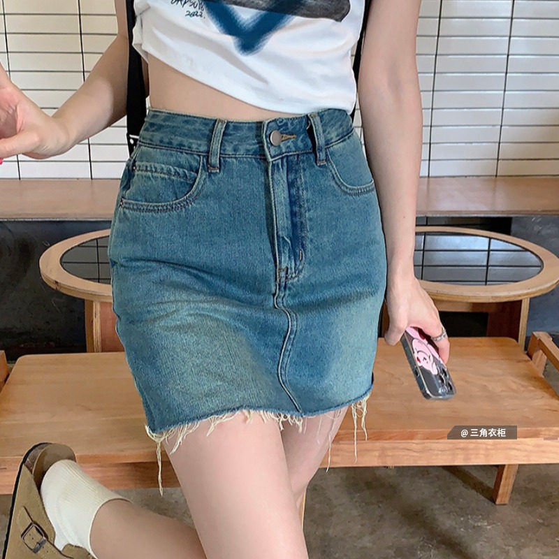 Летняя ретро кожаная модная джинсовая юбка, с акцентом на бедрах, подходит для подростков, в корейском стиле, высокая талия