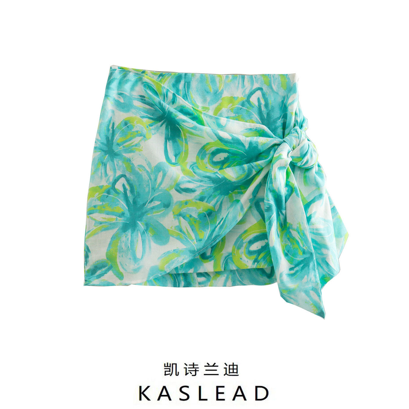 Kaslead New Women's European и American Style Linen Cating Style Style Printed Mini юбка в стиле 3753267