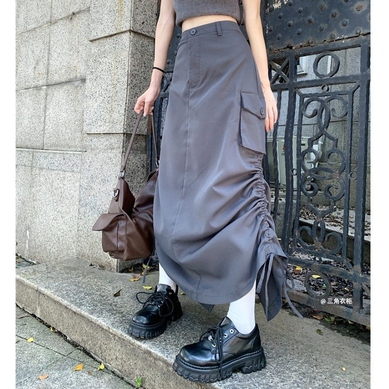 Дизайнерская осенняя длинная юбка, тренд сезона, на шнурках, в корейском стиле, коллекция 2022, средней длины