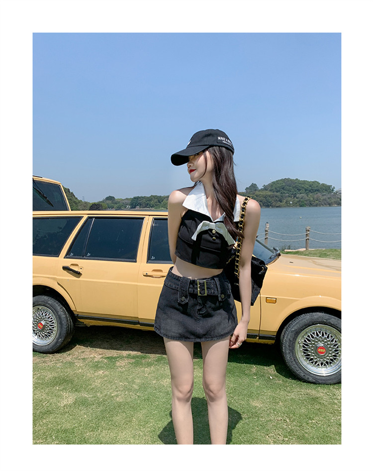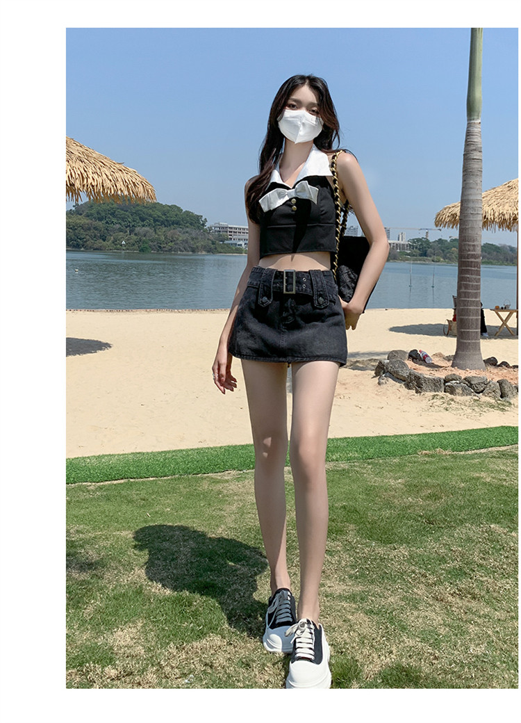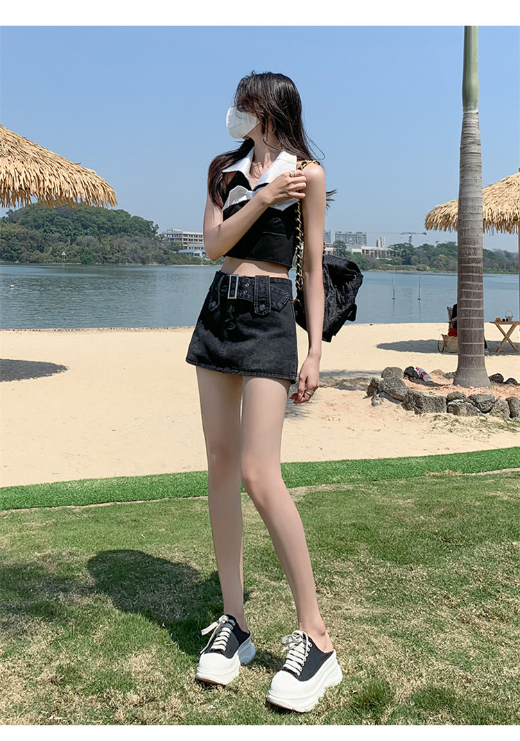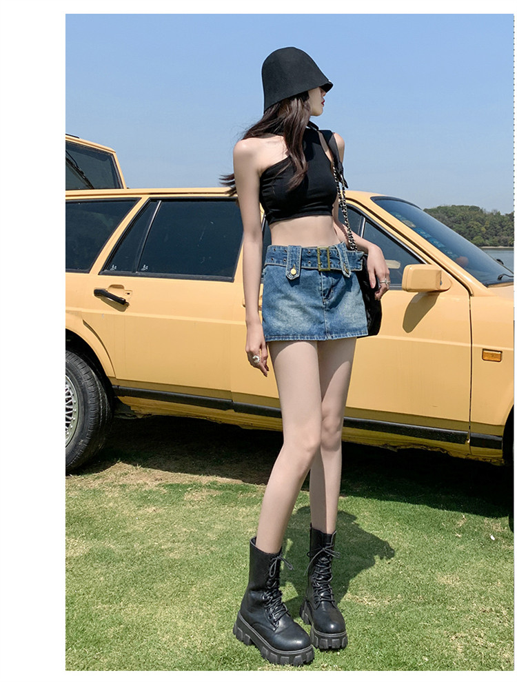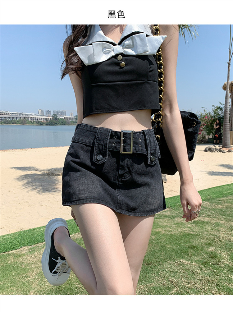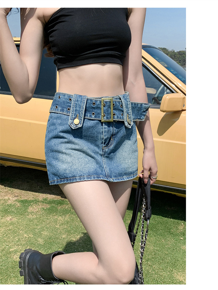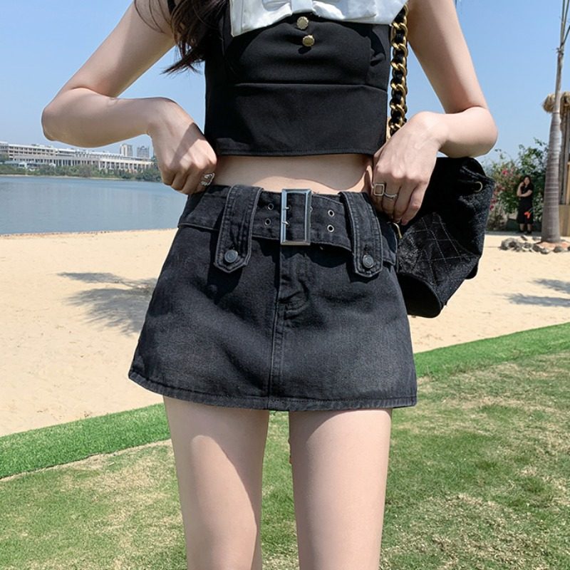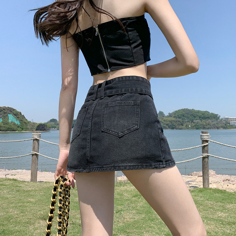 Дизайнерская джинсовая юбка, приталенные шорты, тренд сезона, 2024 года, высокая талия, А-силуэт