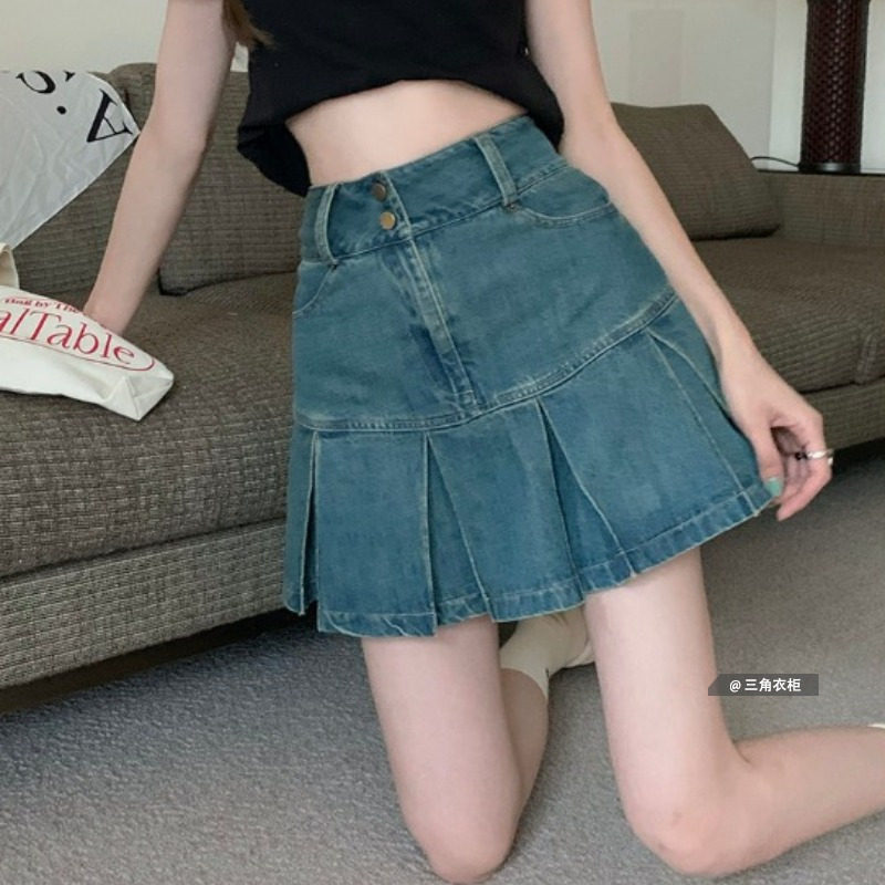Ретро приталенная летняя кожаная дизайнерская джинсовая юбка, А-силуэт, подходит для подростков