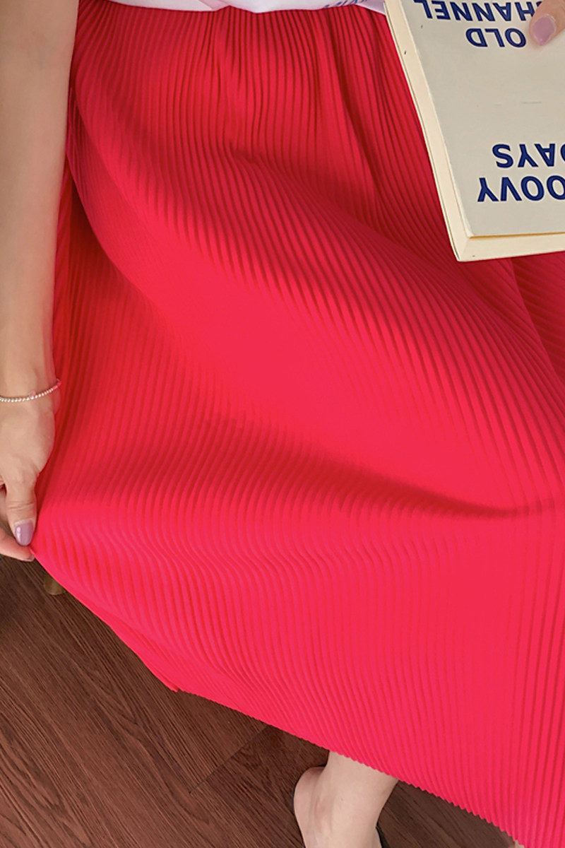 Красная шелковая шифоновая тонкая длинная юбка, высокая талия, свободный прямой крой, средней длины