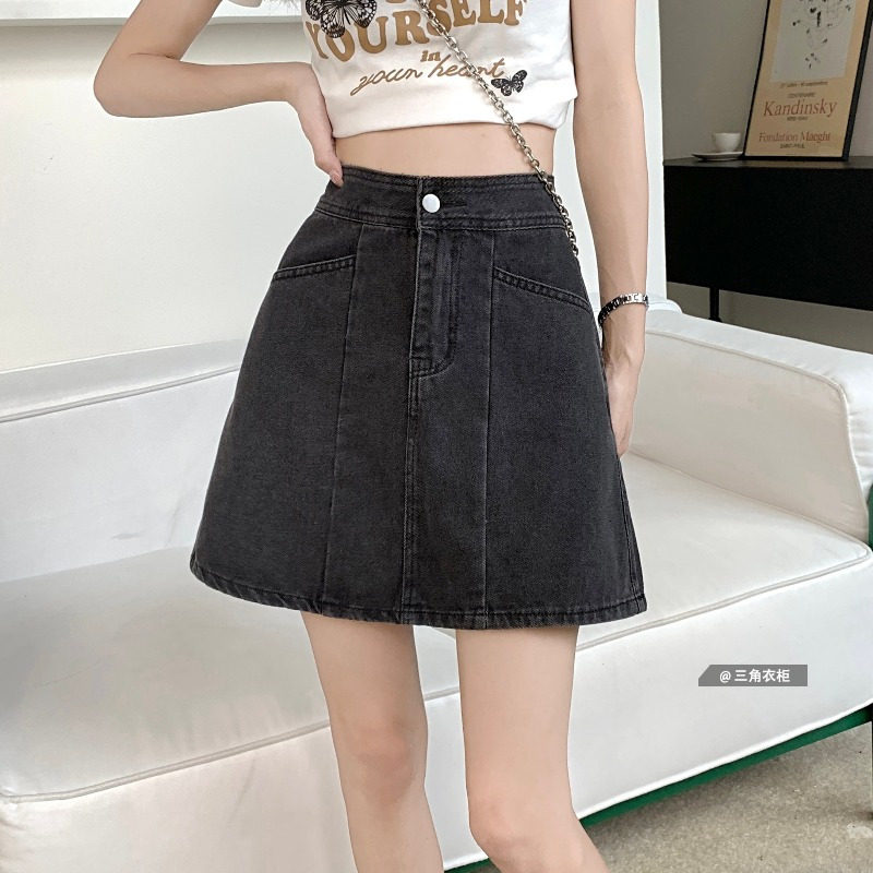 Летняя мини-юбка, джинсовая юбка, А-силуэт, высокая талия, в корейском стиле, с акцентом на бедрах