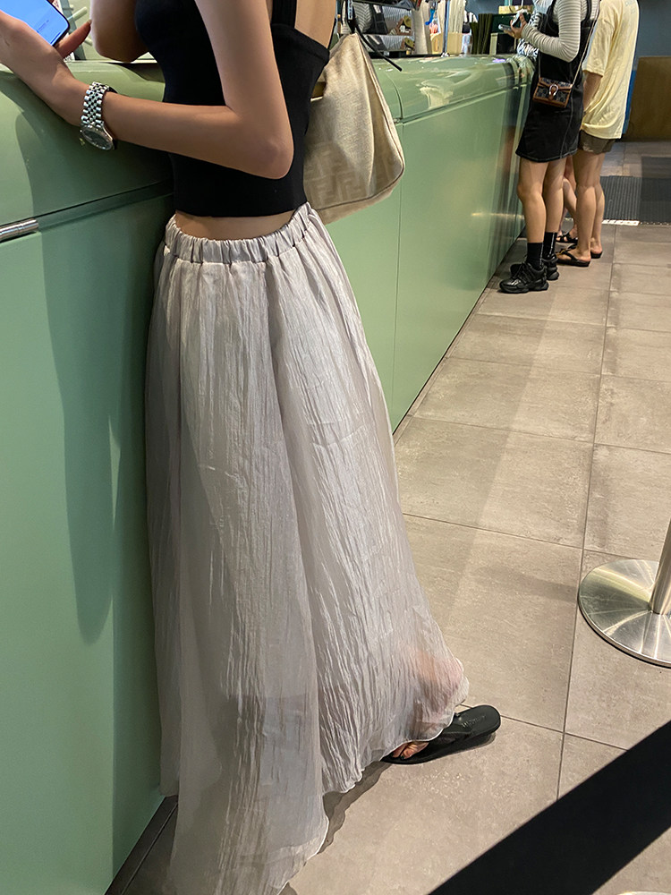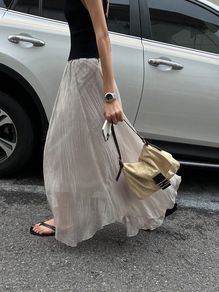 Шифоновая летняя длинная юбка, изысканный стиль, яркий броский стиль, высокая талия, А-силуэт