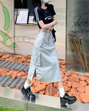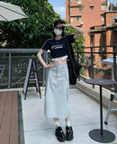 Ретро летняя длинная приталенная юбка, в американском стиле, А-силуэт, средней длины, с акцентом на бедрах