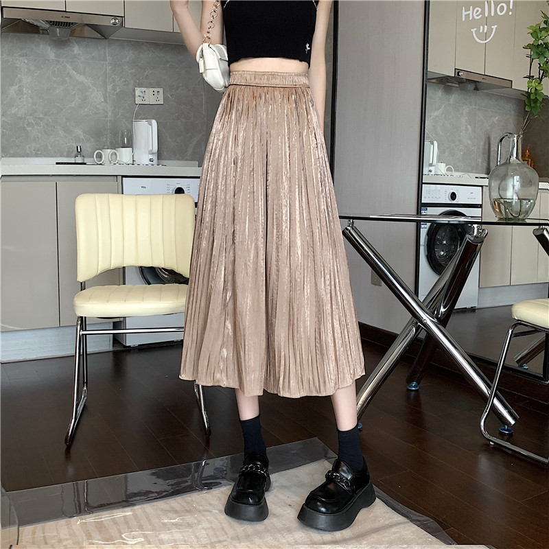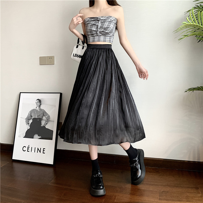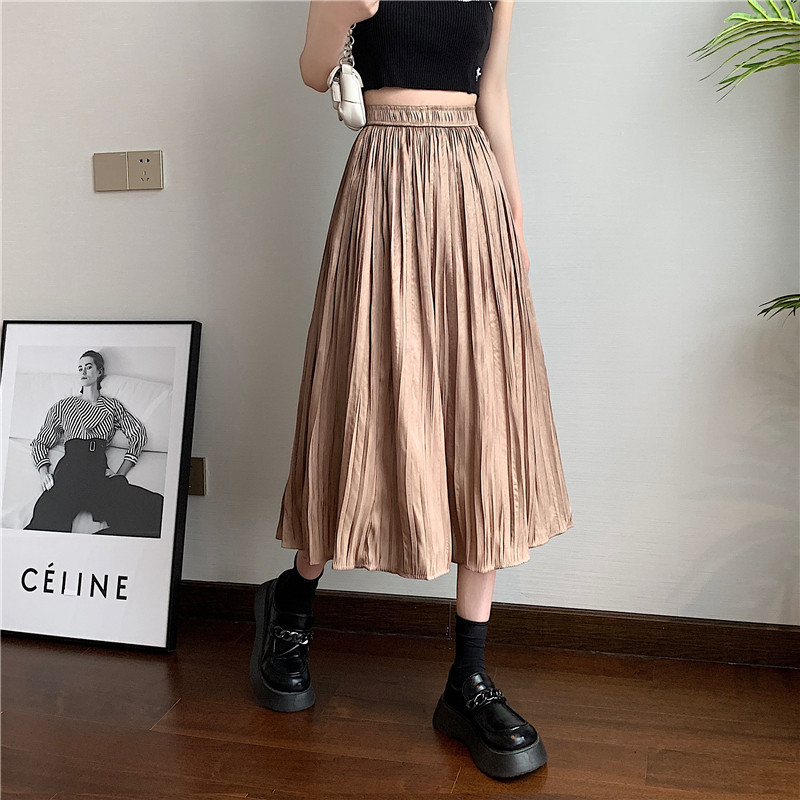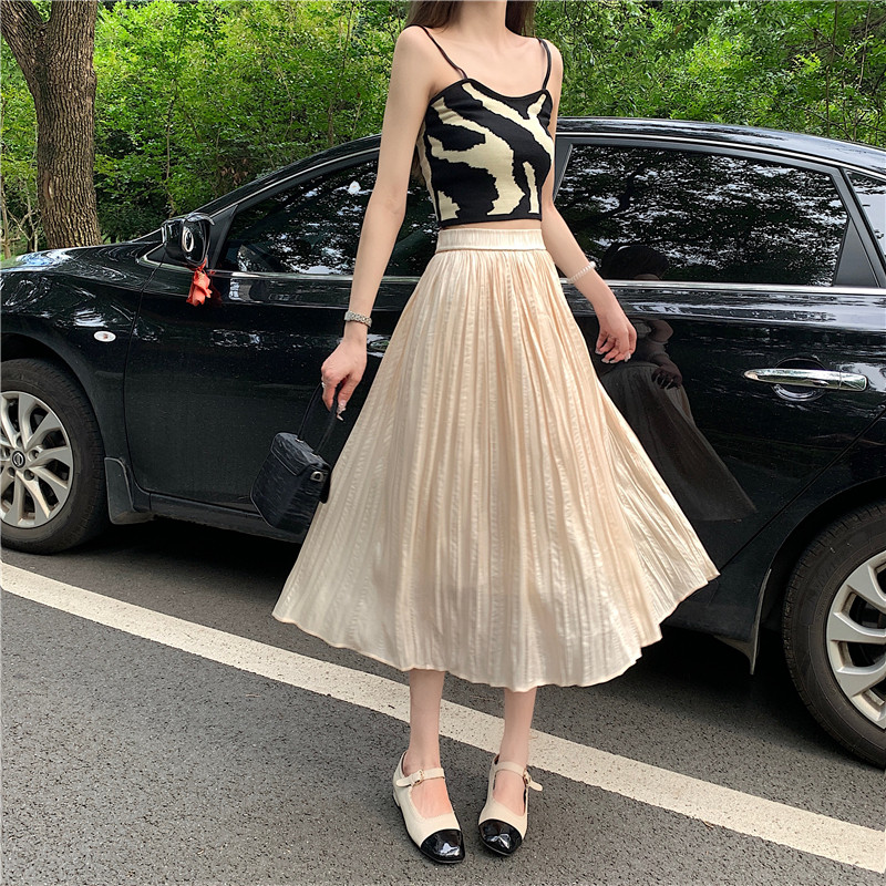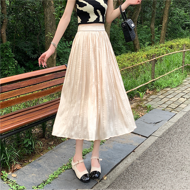 Летняя тонкая длинная юбка в складку, плиссированная юбка, средней длины, высокая талия, А-силуэт, подходит для подростков