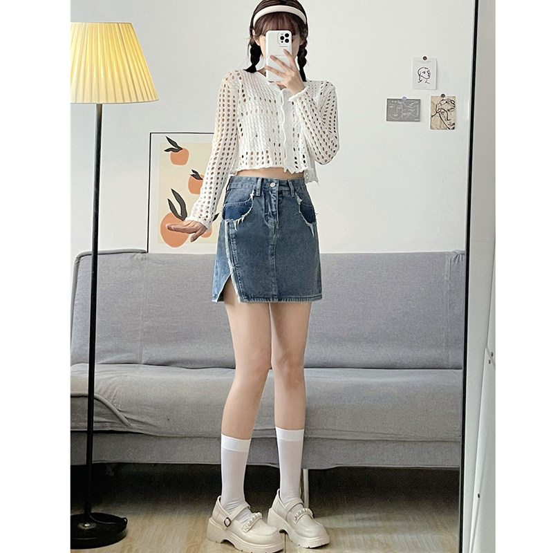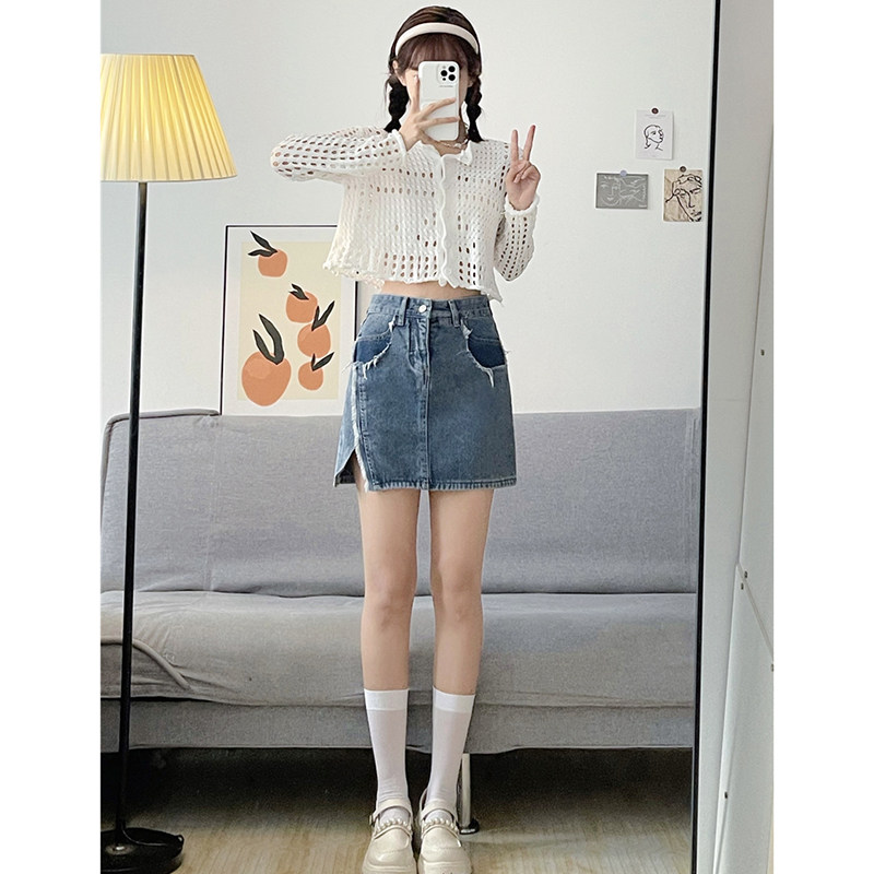 Летняя тонкая джинсовая юбка, мини-юбка, А-силуэт, с акцентом на бедрах, большой размер, высокая талия