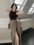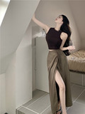 Ремень, летняя сексуальная длинная юбка, с акцентом на бедрах, длина миди, высокая талия, А-силуэт
