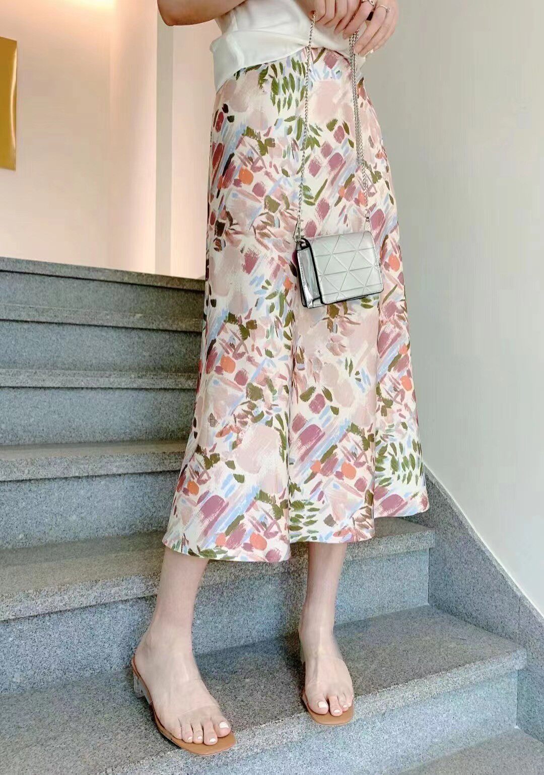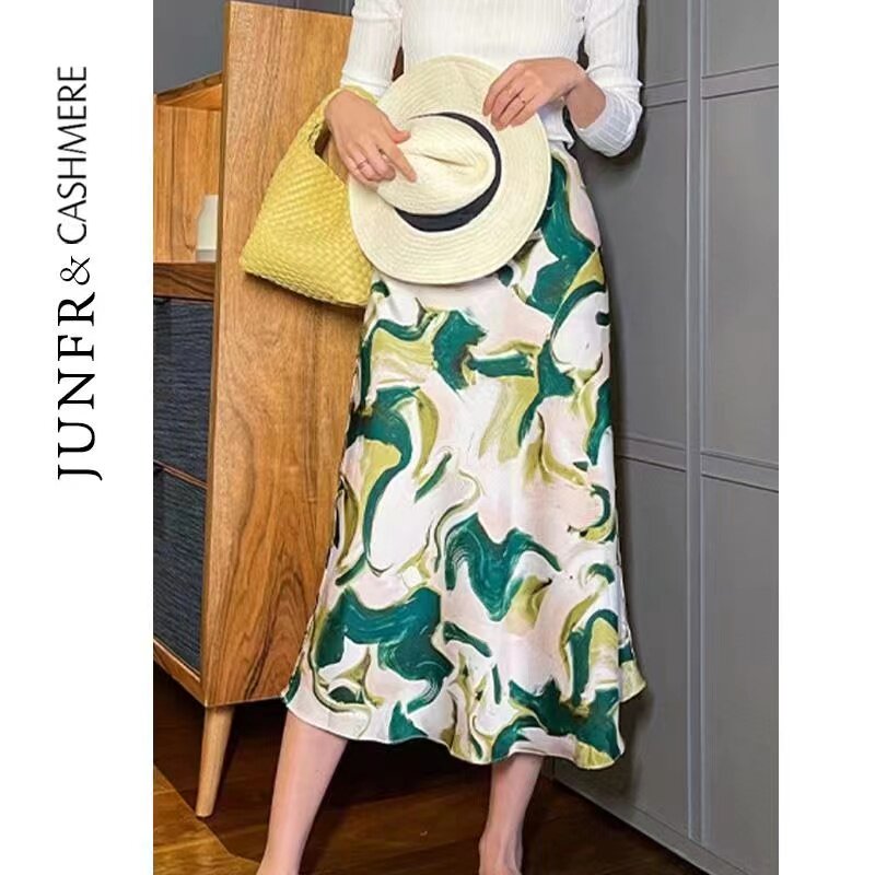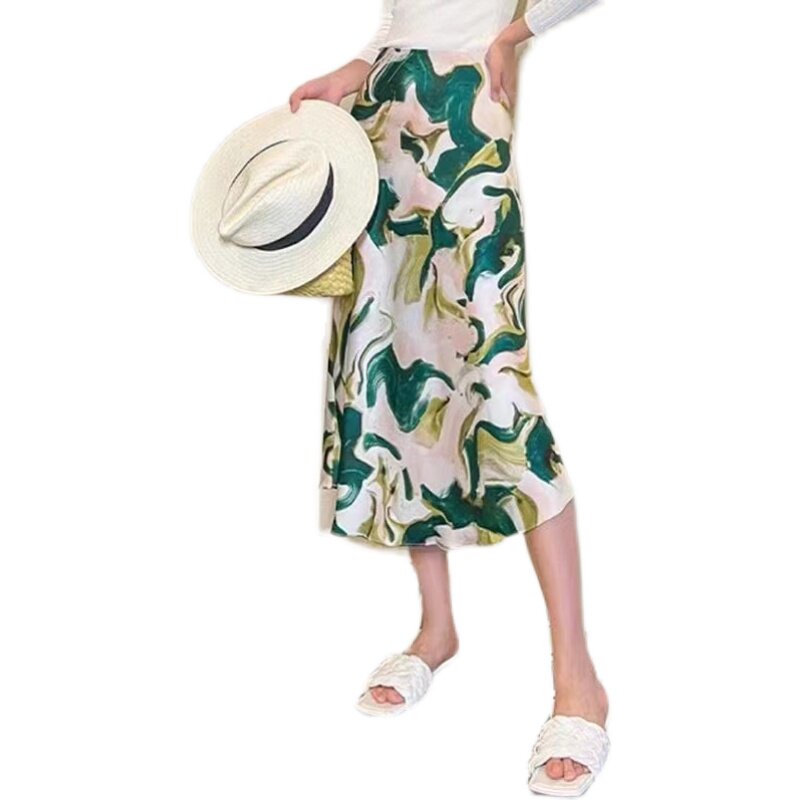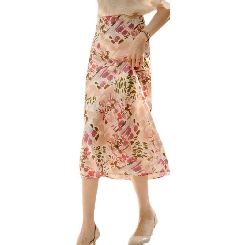 Масло для лица, длинная юбка, поясная сумка, средней длины, премиум класс, легкий роскошный стиль, цветочный принт, высокая талия