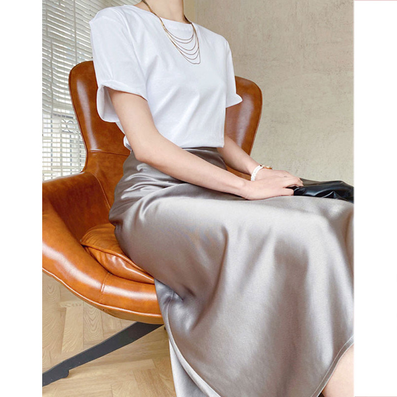 Элитная белая цветная приталенная шелковая длинная летняя длинная юбка, средней длины, изысканный стиль, длина макси