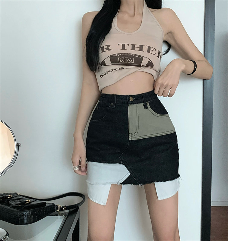 Летняя джинсовая юбка, сексуальная мини-юбка, А-силуэт, высокая талия, в обтяжку, с акцентом на бедрах
