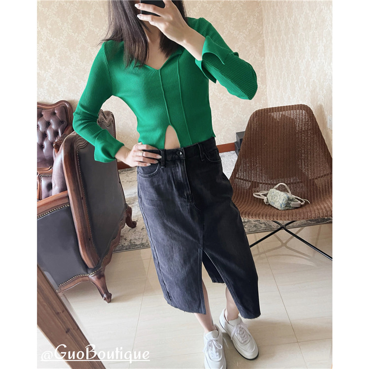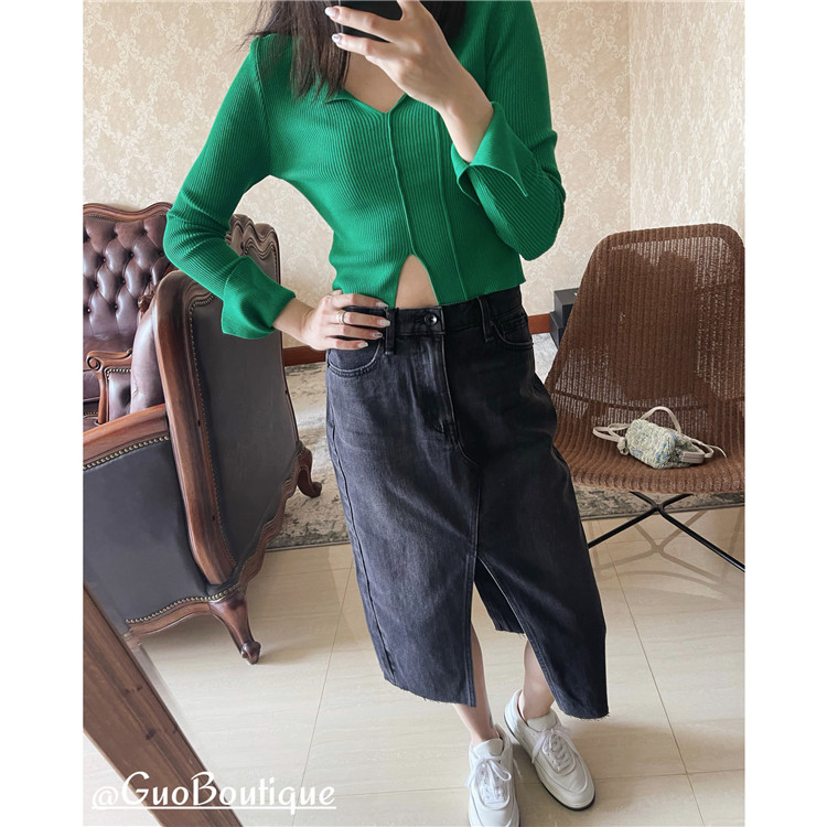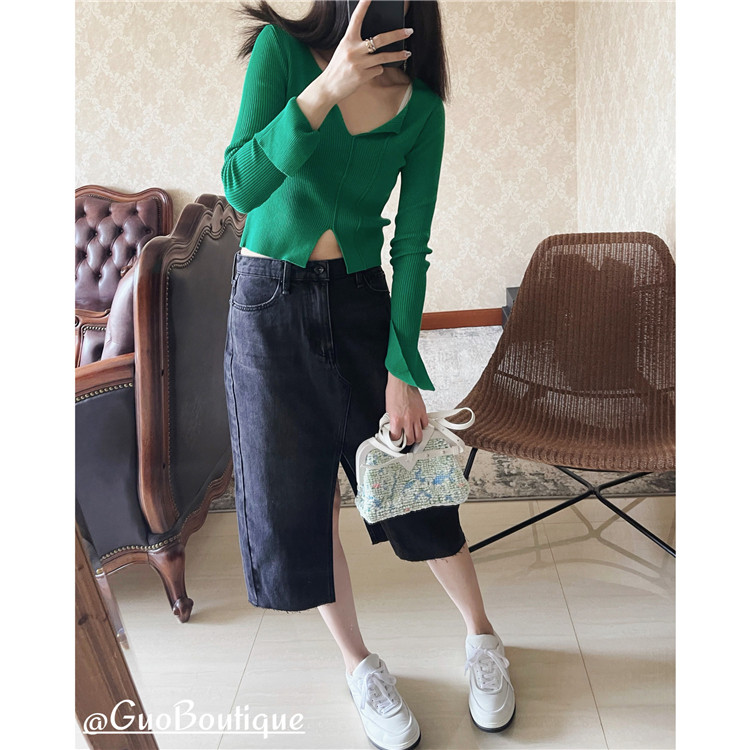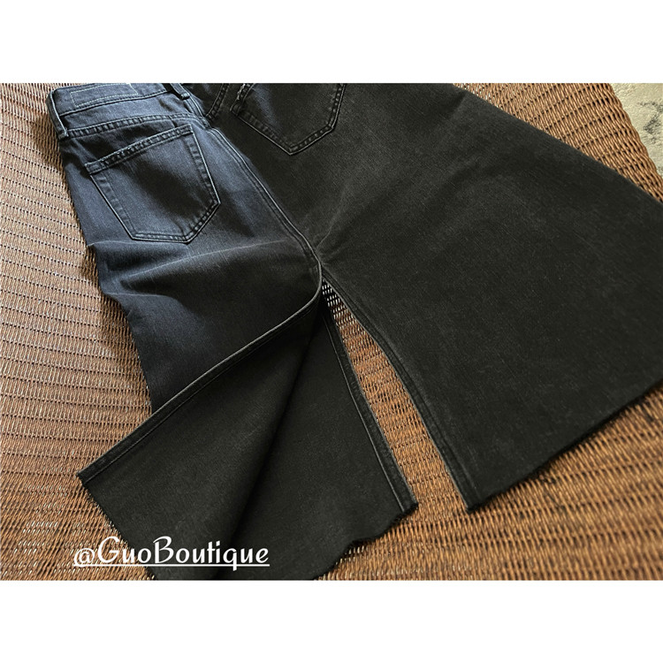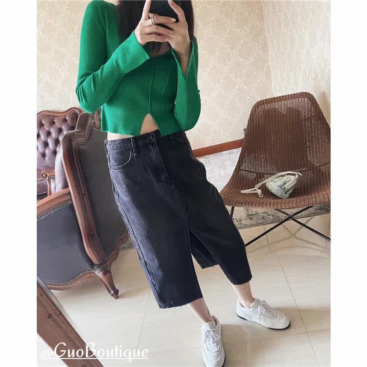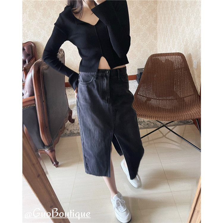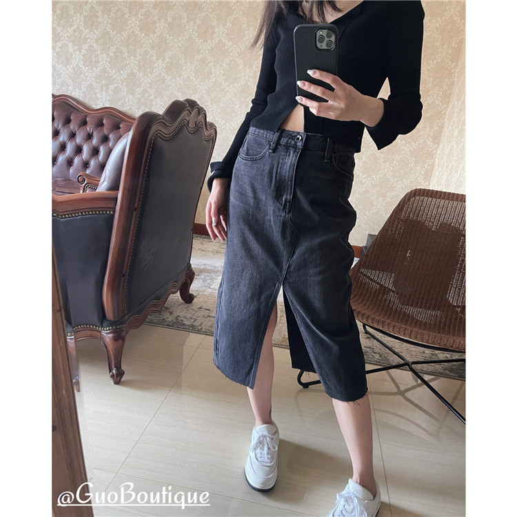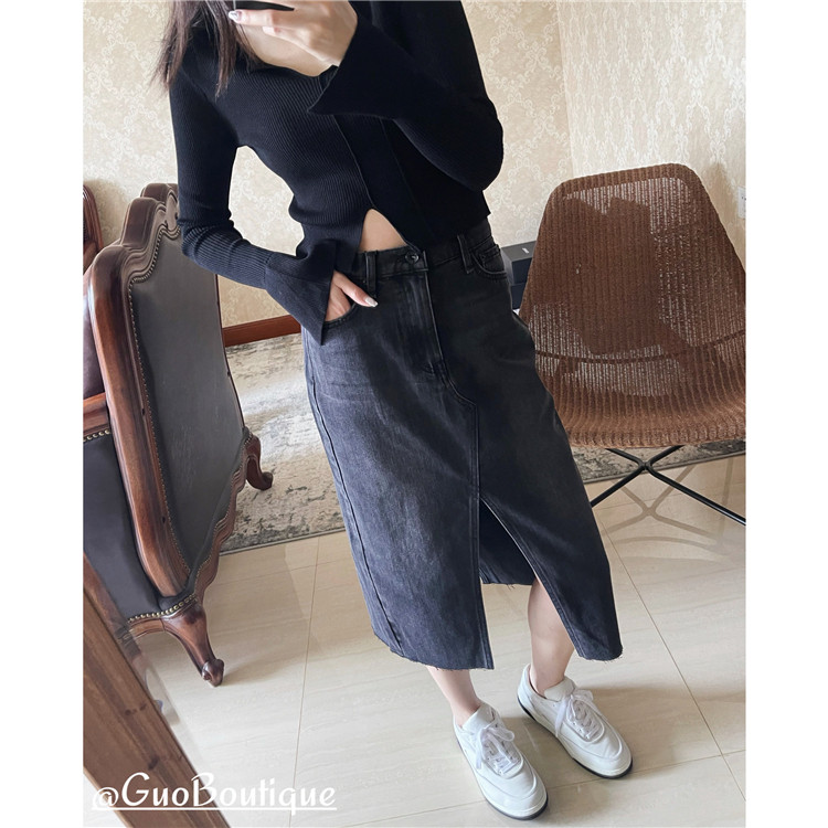 Осенняя джинсовая джинсовая юбка, юбка в складку, длинная юбка, европейский стиль, высокая талия, средней длины