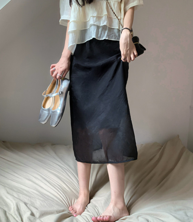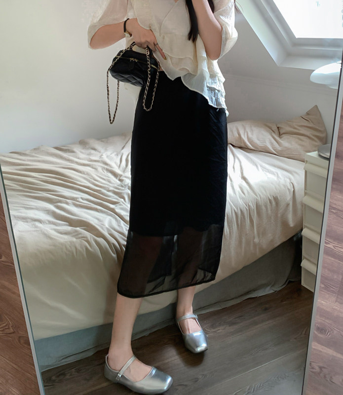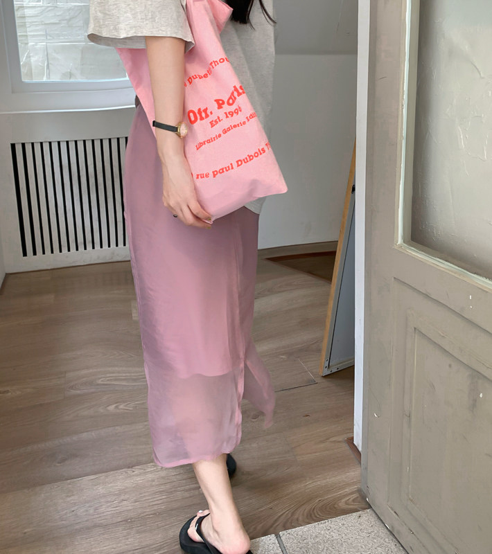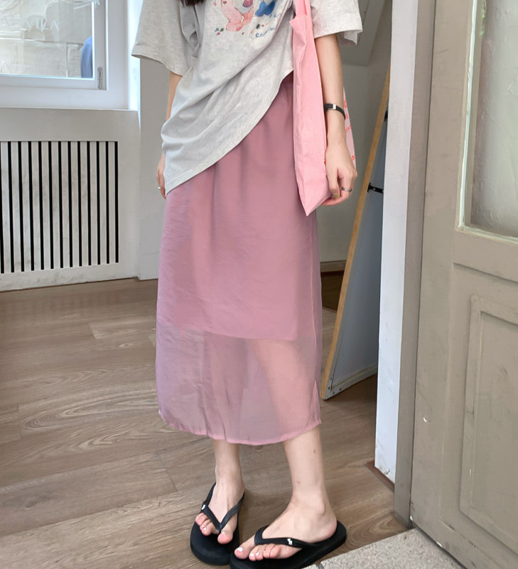 Шифоновая розовая цветная летняя длинная юбка, французский стиль, изысканный стиль, высокая талия, подходит для подростков, свободный прямой крой