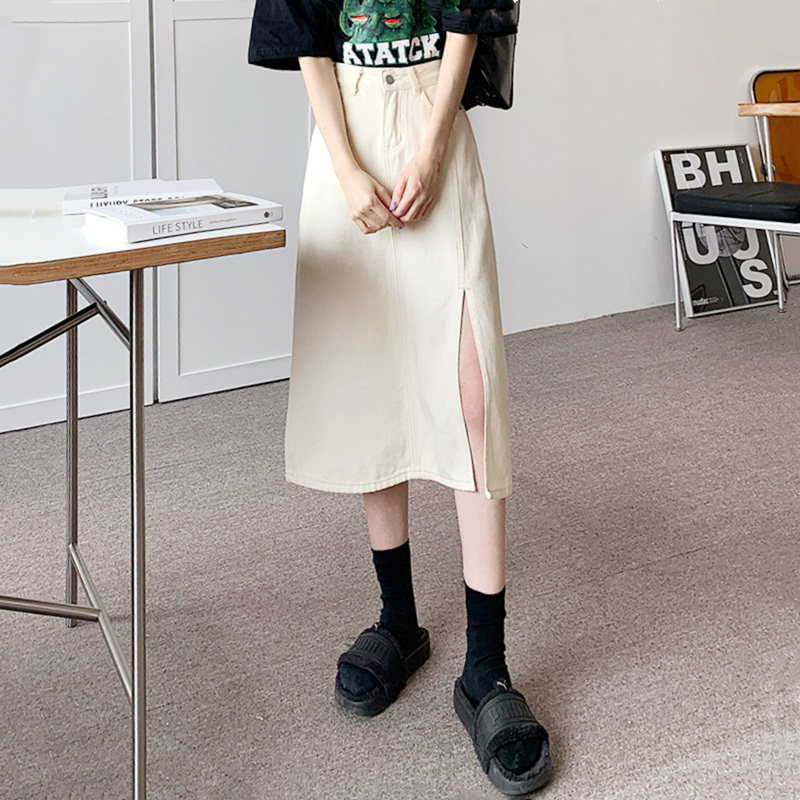 Белая джинсовая юбка, длинная весенняя летняя длинная юбка, А-силуэт, высокая талия, большой размер, средней длины, коллекция 2022