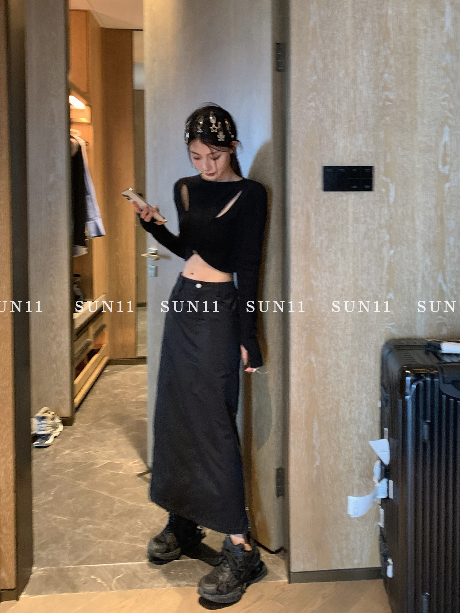 Приталенная ретро длинная юбка, в американском стиле, с акцентом на бедрах