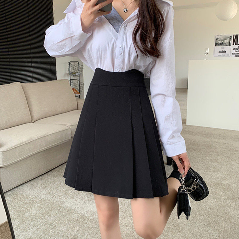 Необычная плиссированная юбка для женщин, закрывающая живот, утягивающая студенческая юбка А-силуэта большого размера, осенняя толстая юбка толщиной в миллиметр