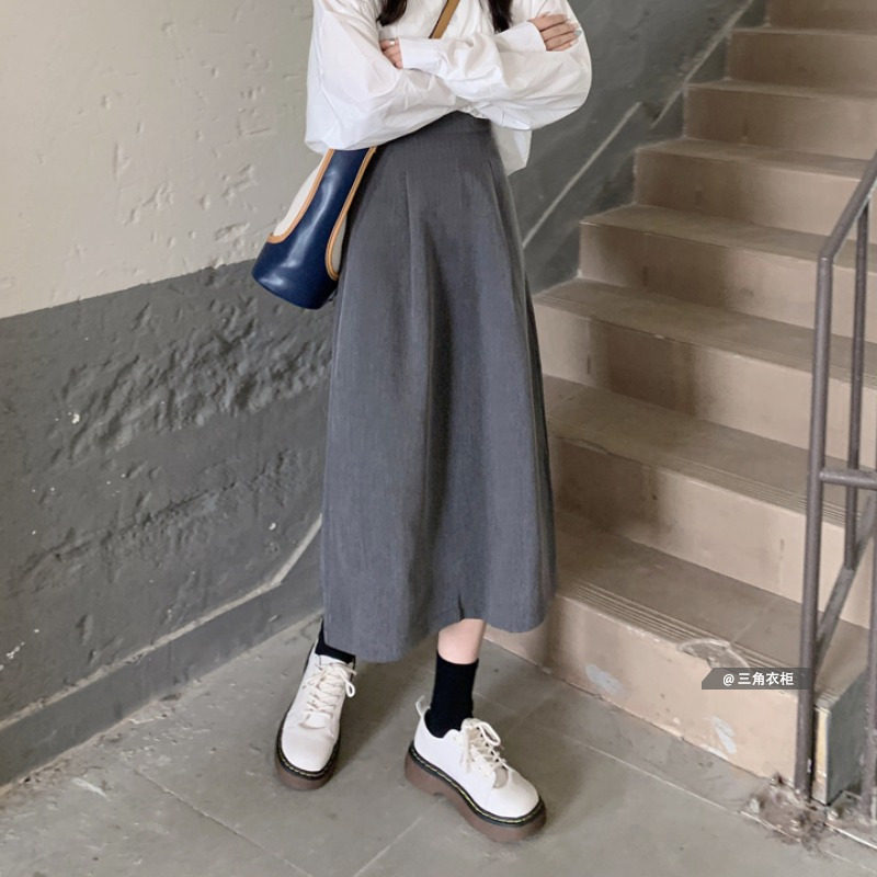 Однотонная длинная осенняя юбка, высокая талия, свободный крой, А-силуэт, коллекция 2022, в корейском стиле