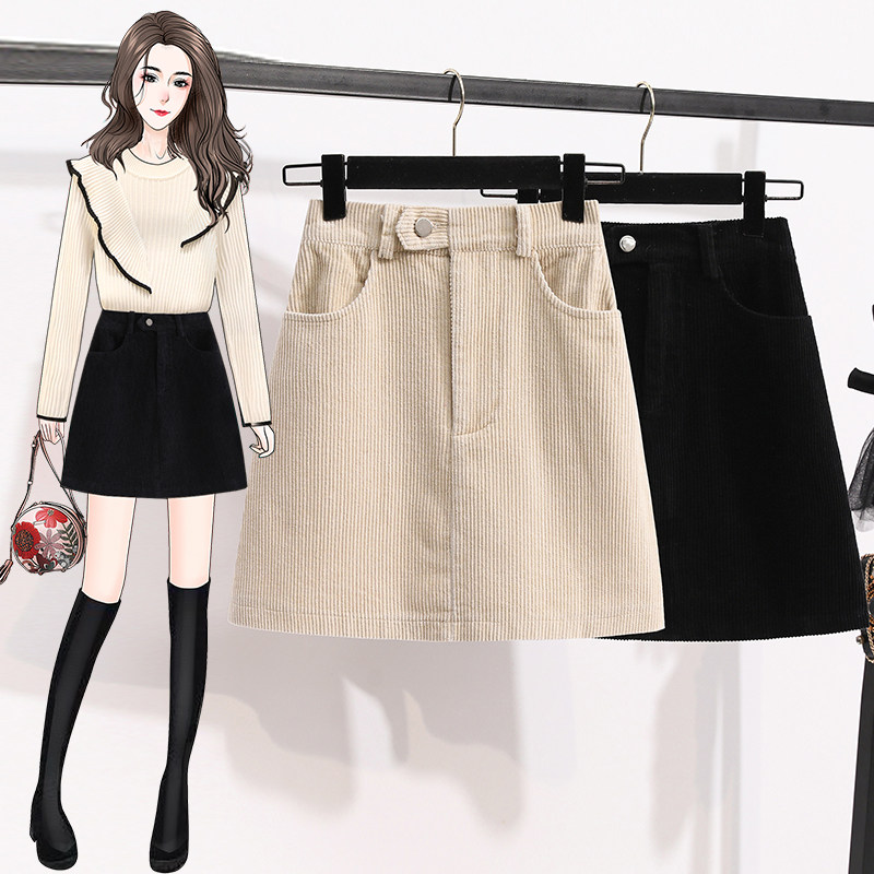 Приталенная вельветовая осенняя модная юбка, большой размер, высокая талия, свободный крой