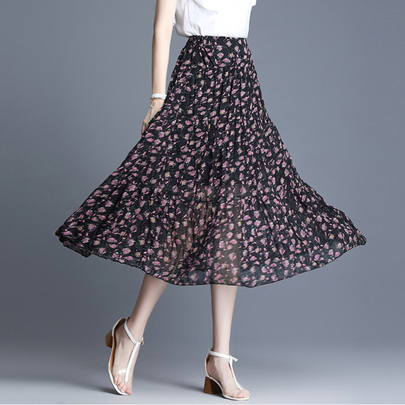 Летняя длинная юбка, базовая юбка в складку, цветочный принт, средней длины