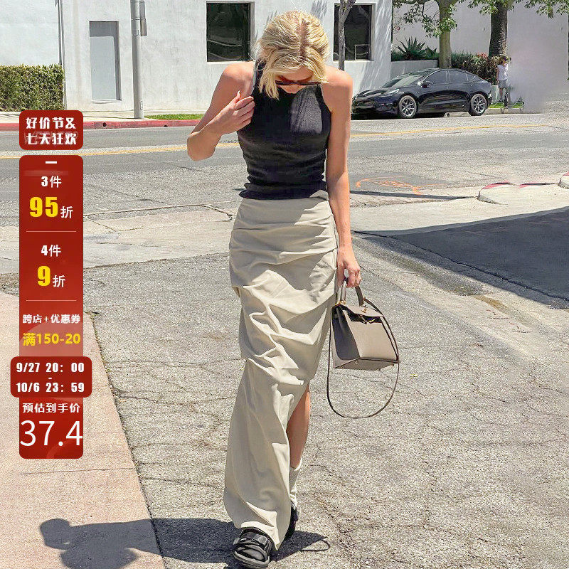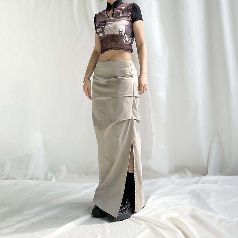 WEEKEEP Однотонная приталенная длинная юбка, средней длины, с акцентом на бедрах