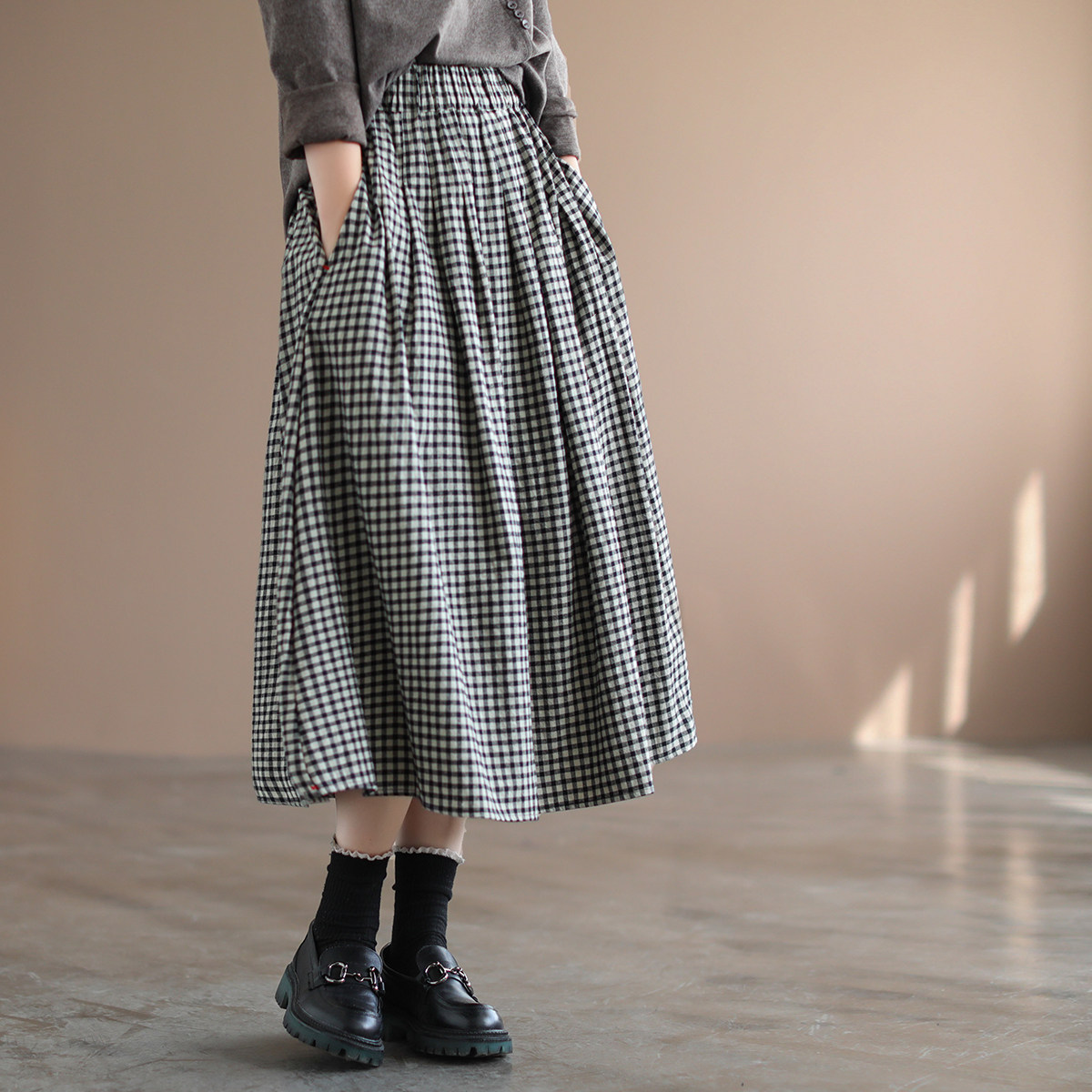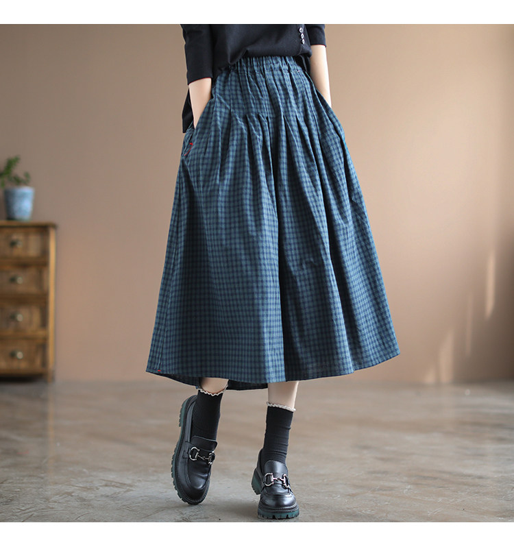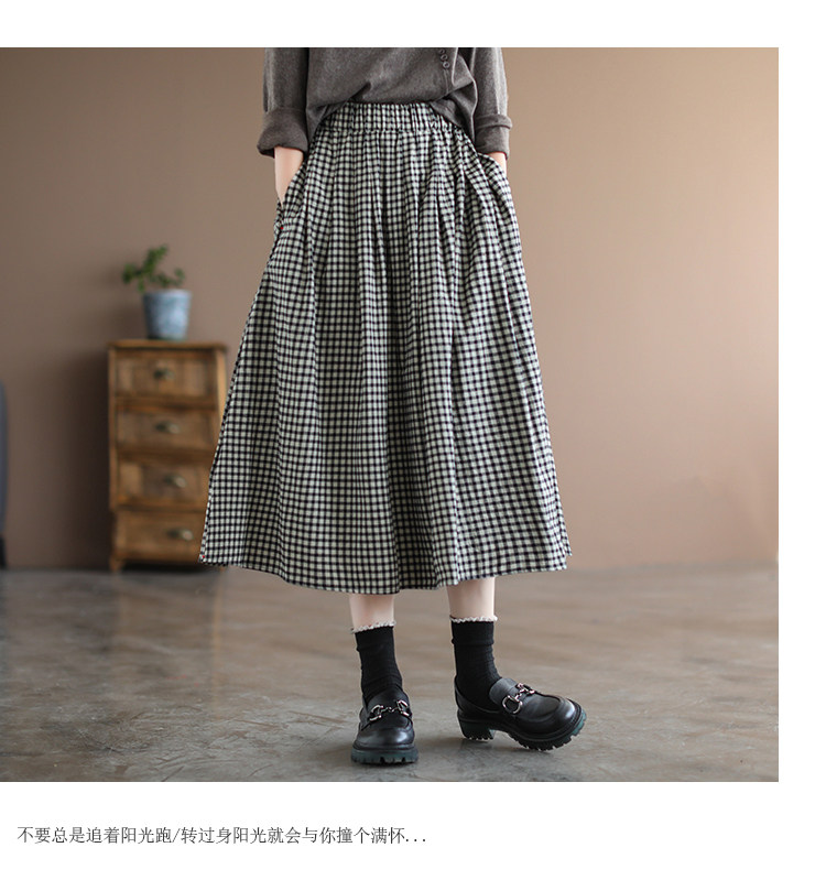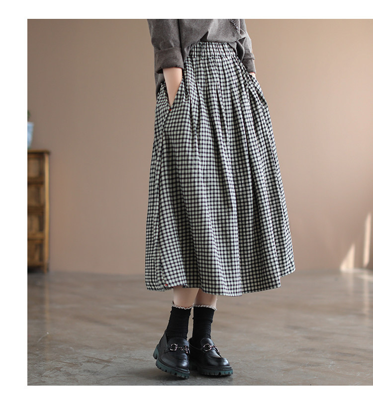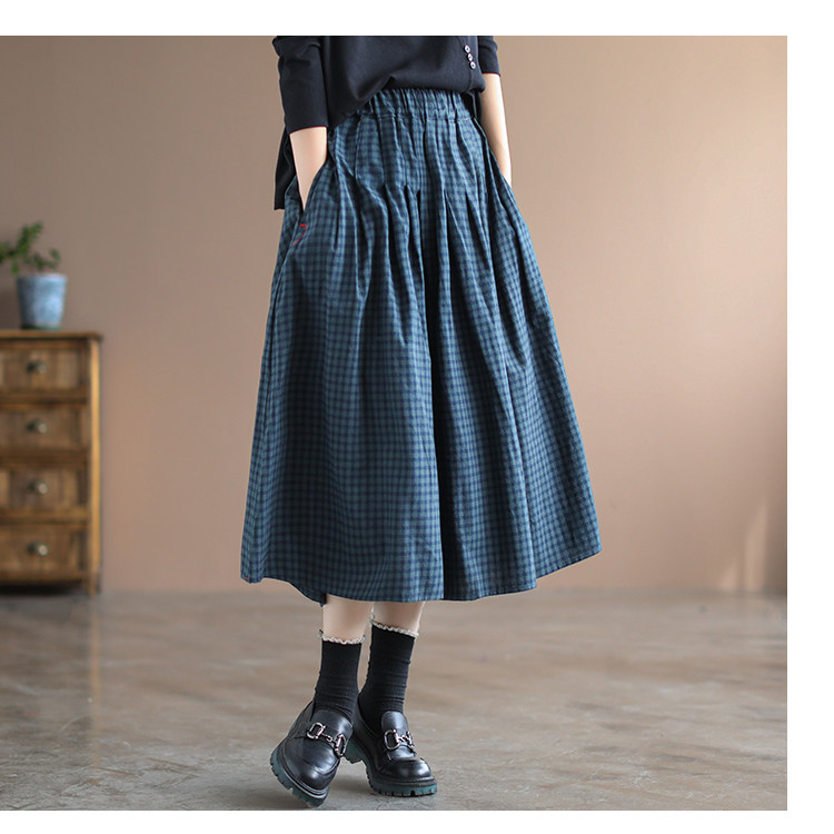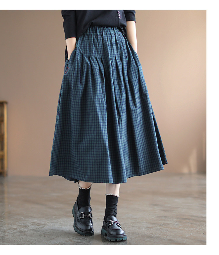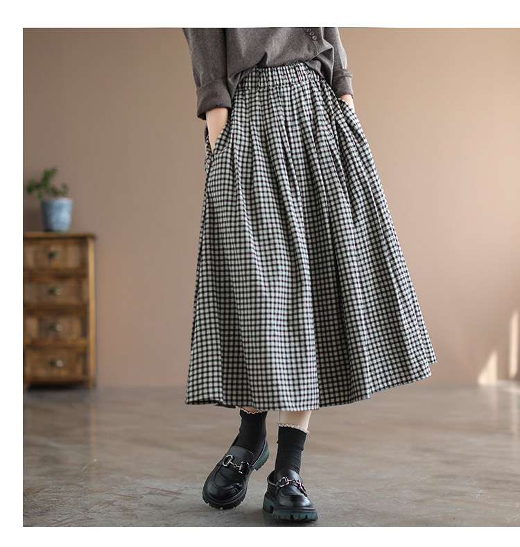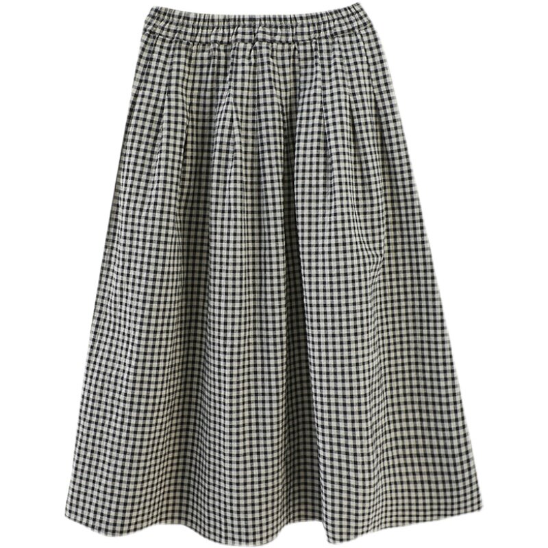 Приталенная длинная клетчатая ретро длинная юбка, Италия, из хлопка и льна, А-силуэт
